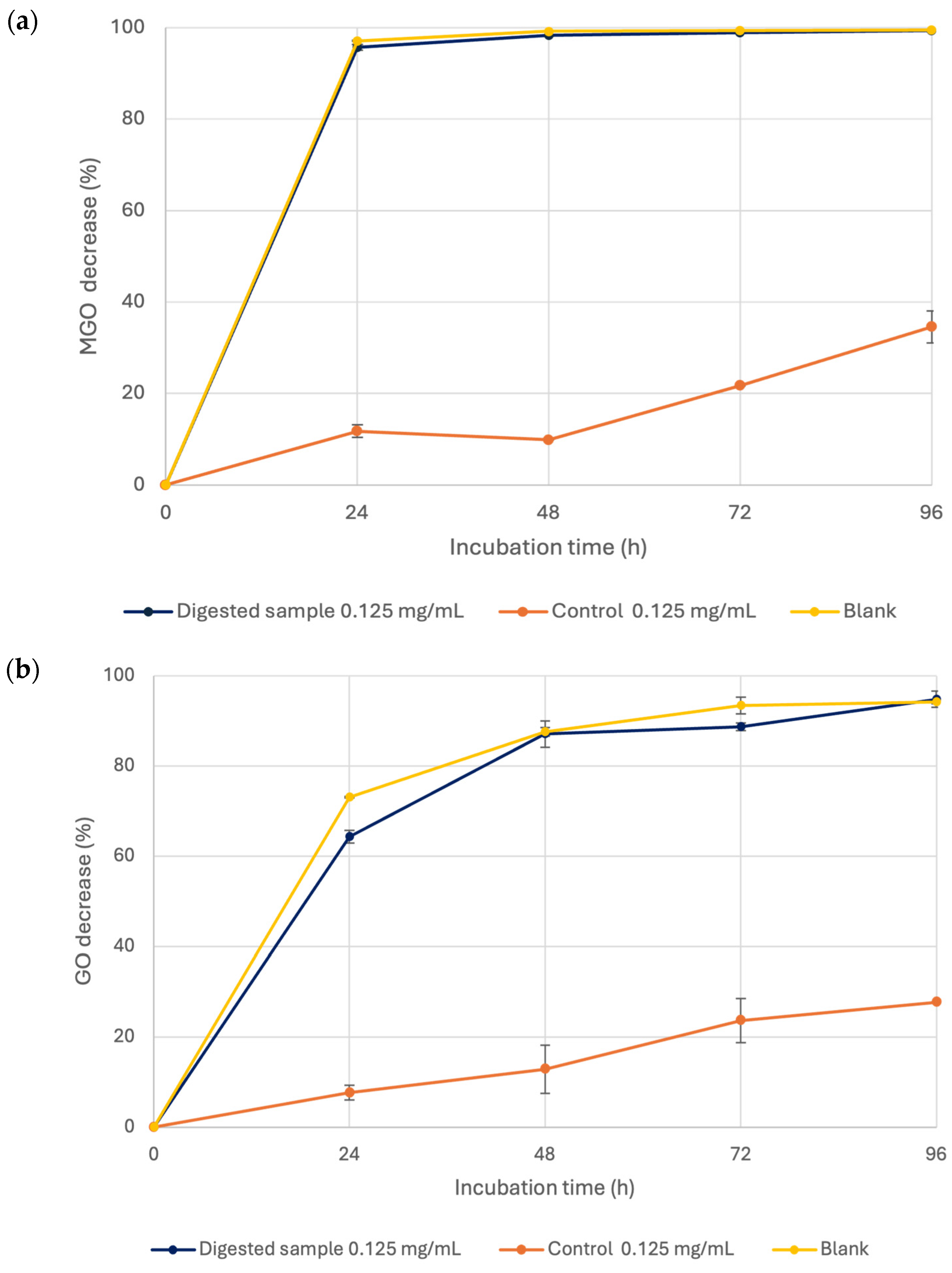 2.4. Evaluation of MGO and GO Trapped by the RP-UHPLC-DAD Method