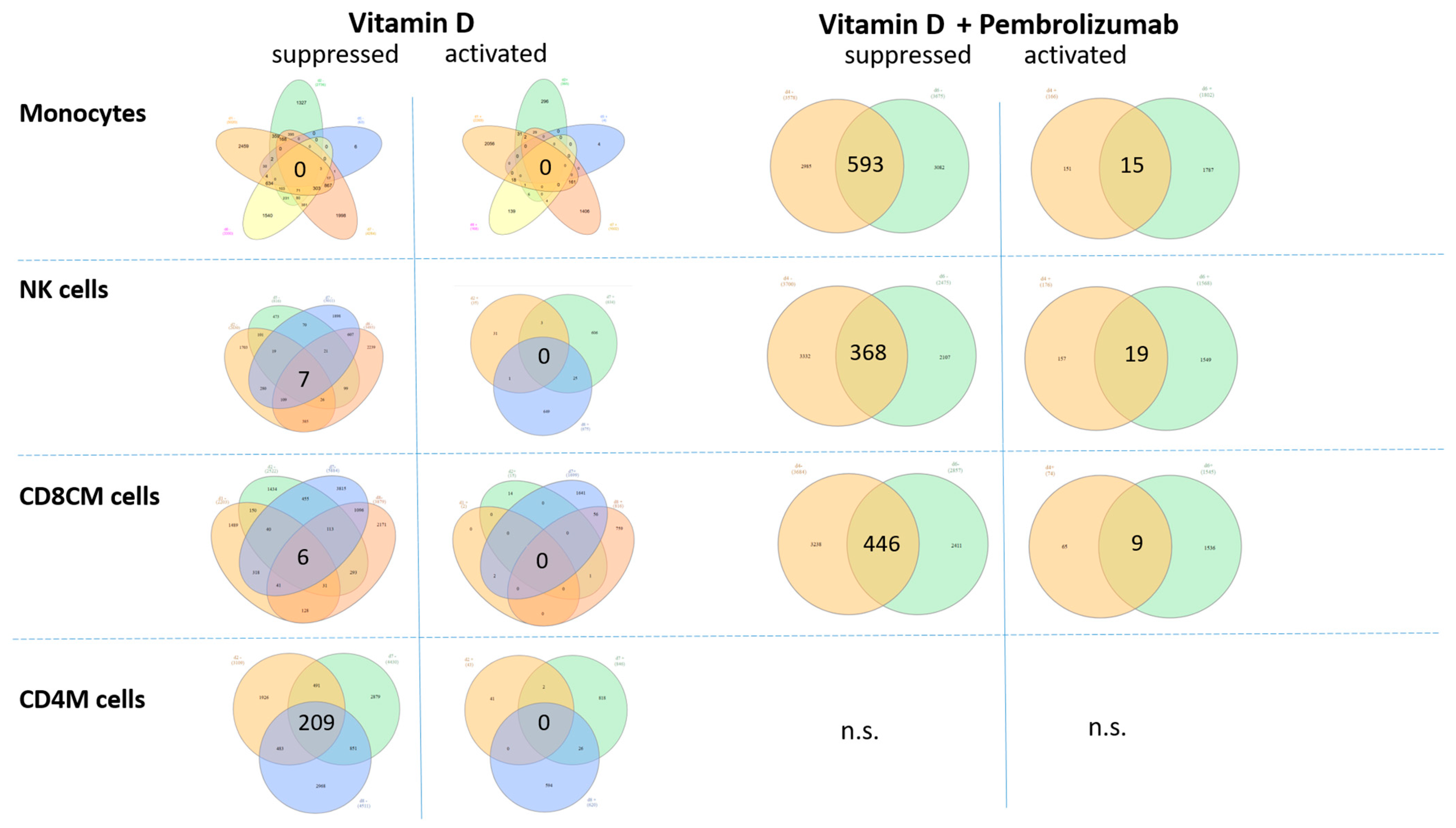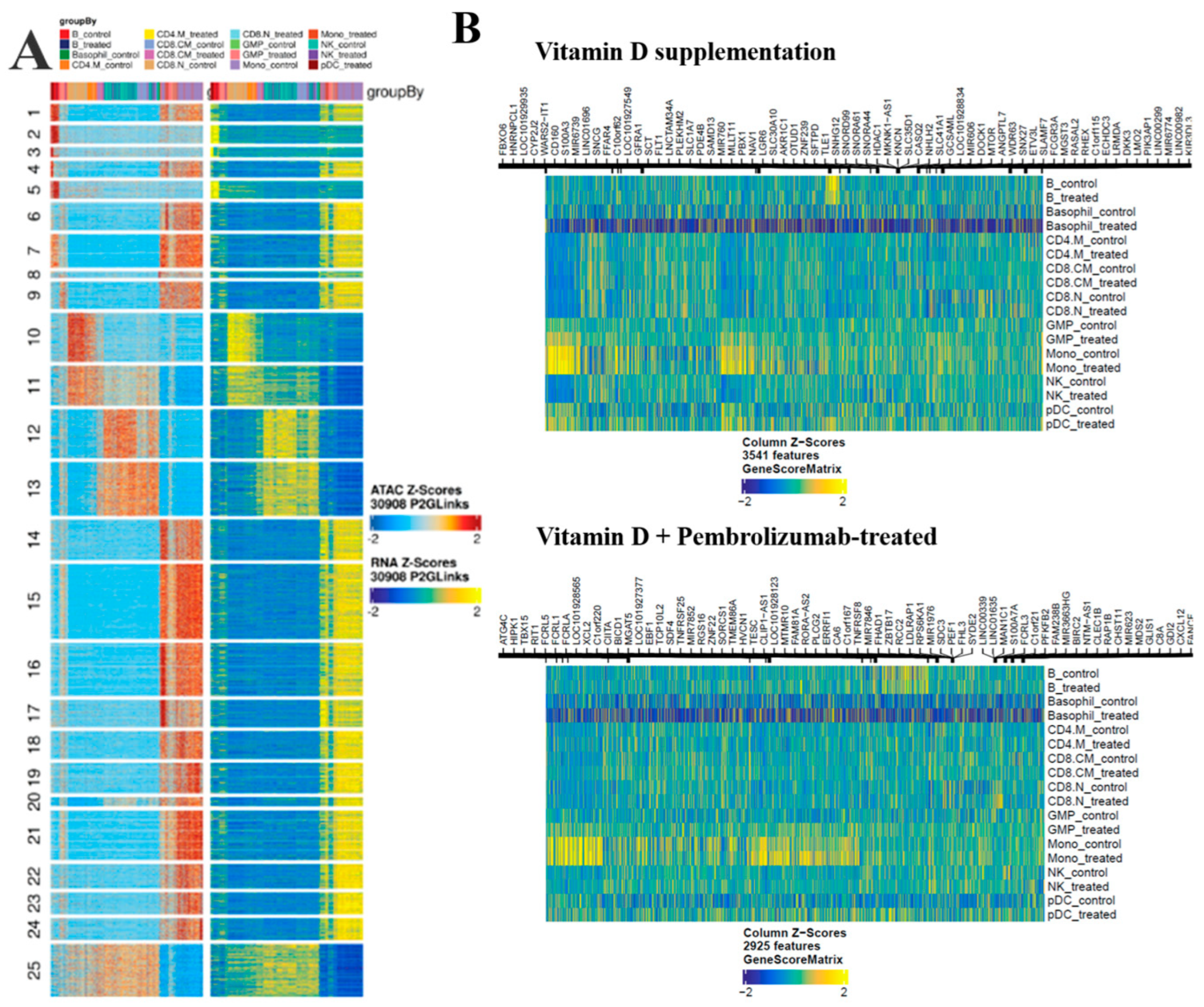 - Li, P.; Zhu, X.; Cao, G.; Wu, R.; Li, K.; Yuan, W.; Chen, B.; Sun, G.; Xia, X.; Zhang, H.; et al. 1alpha,25(OH)2D3 reverses exhaustion and enhances antitumor immunity of human cytotoxic T cells. J. Immunother. Cancer 2022, 10, e003477. [Google Scholar] [CrossRef]