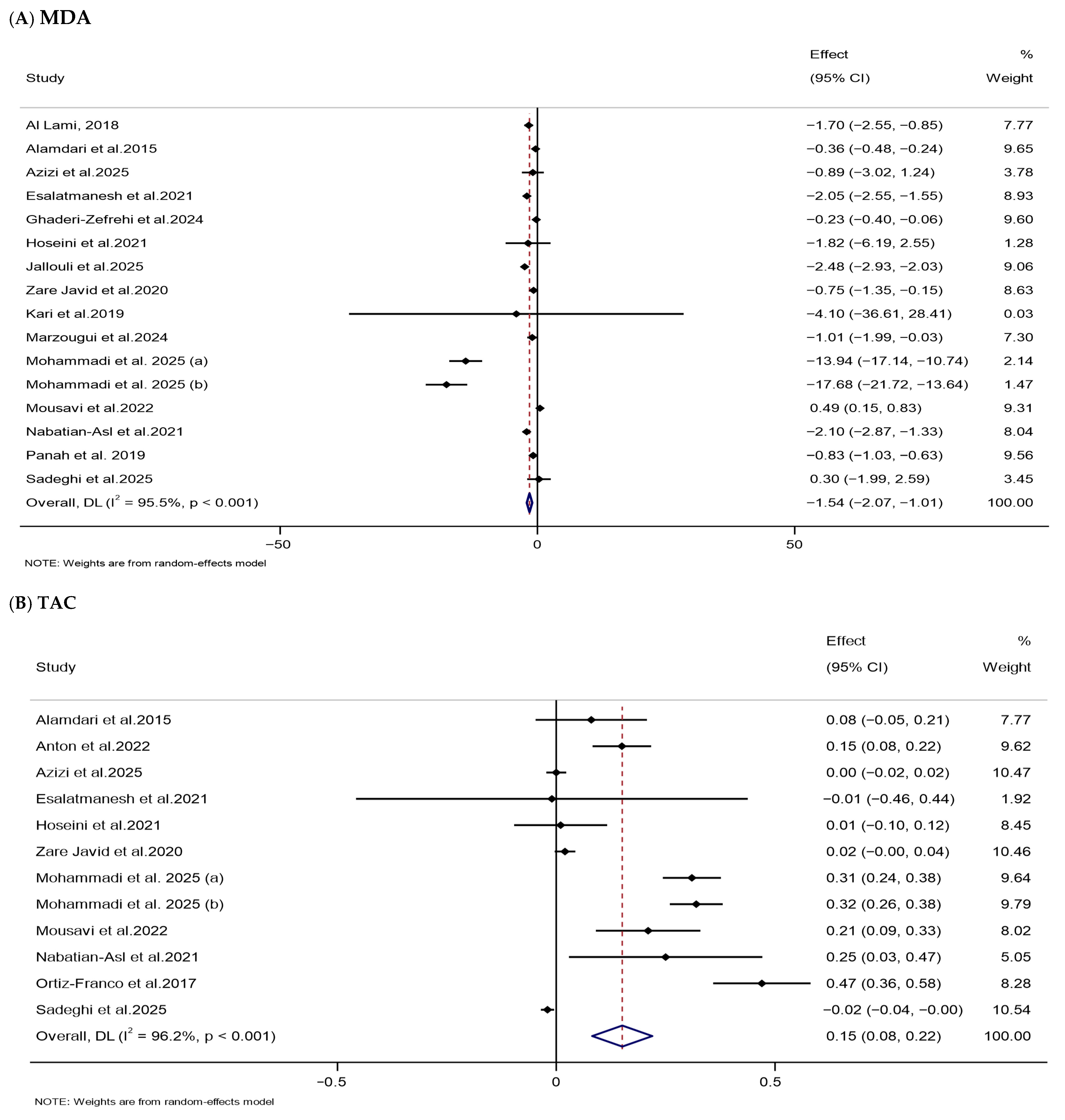 | TAC (mmol/L) | 12 | 524 | 0.15 (0.08, 0.22) | <0.001 | 96.2 | <0.001 | Low (III) |