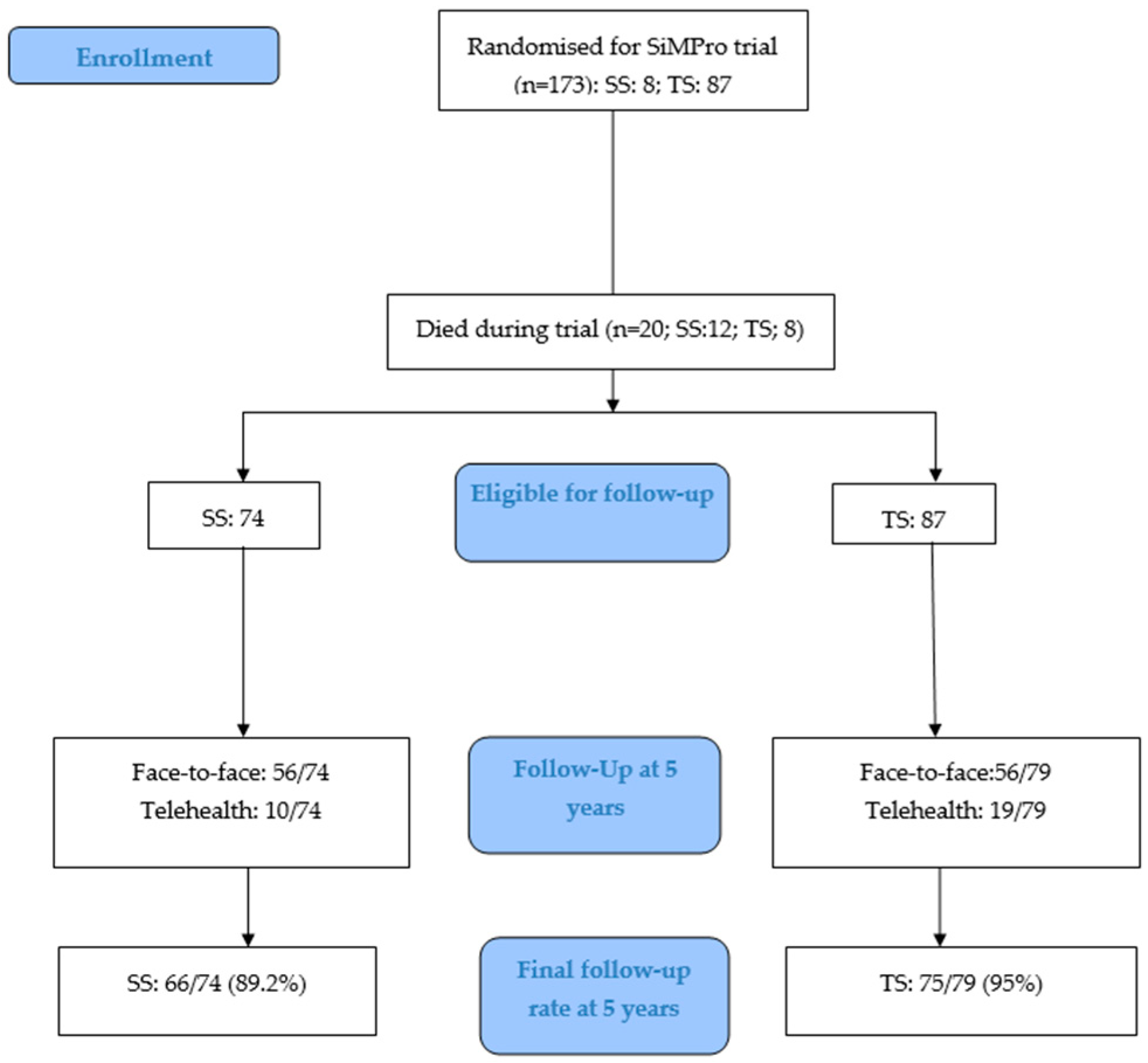 | SS; n = 86 | TS; n = 87 | |||