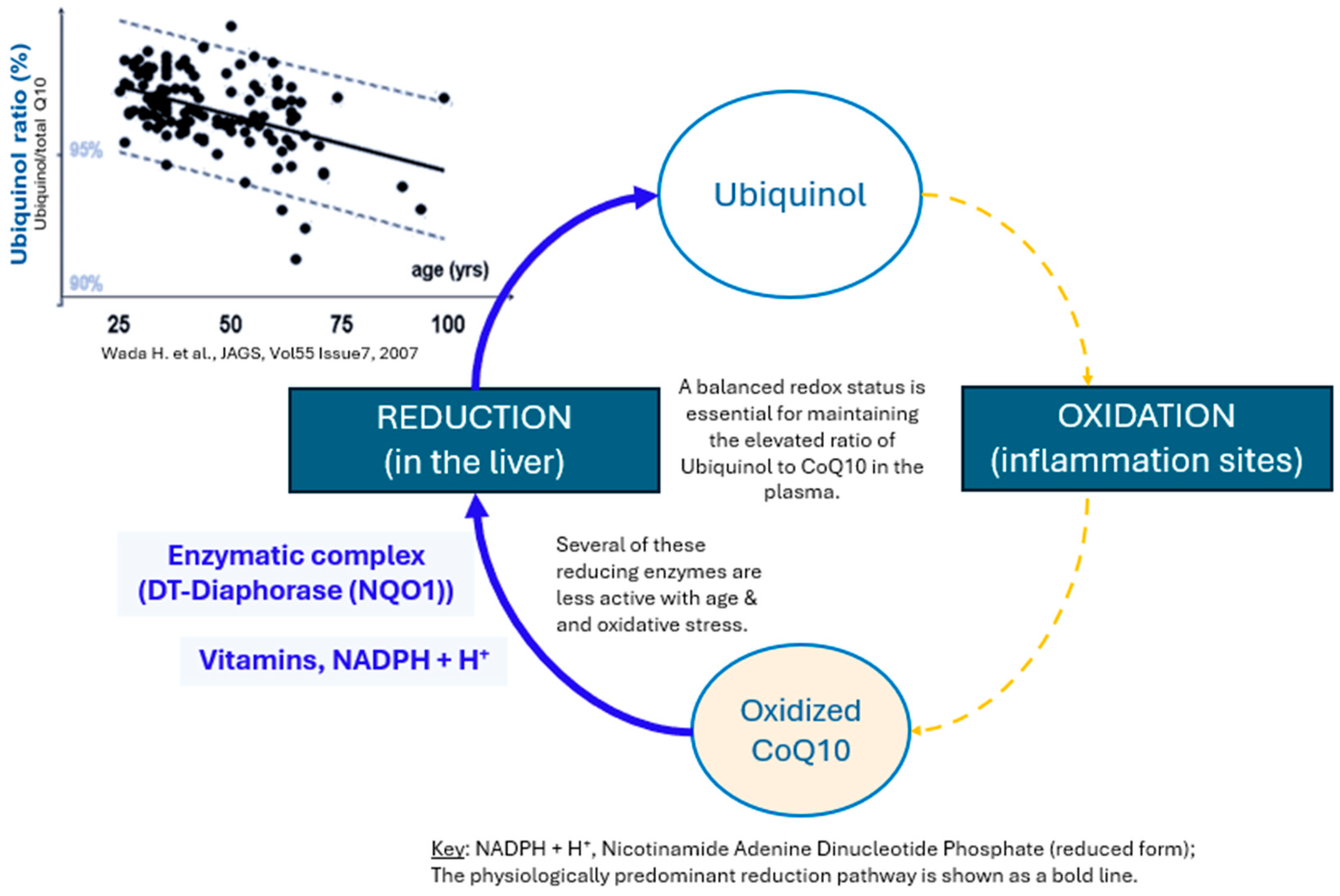 - Mantle, D.; Dewsbury, M.; Hargreaves, I.P. The Ubiquinone-Ubiquinol Redox Cycle and Its Clinical Consequences: An Overview. Int. J. Mol. Sci. 2024, 25, 6765. [Google Scholar] [CrossRef]
