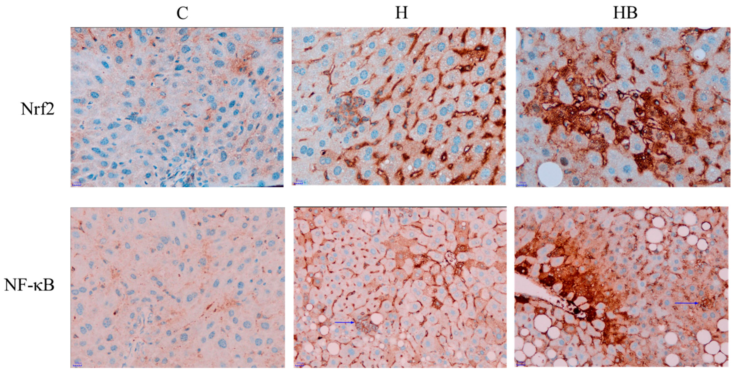 4]. These results suggest that the combination of HFHF and blue exposure may indeed cause an increase in hepatic oxidative stress and inflammation, thereby upregulating the expression of Nrf2 in response to tissue damage.