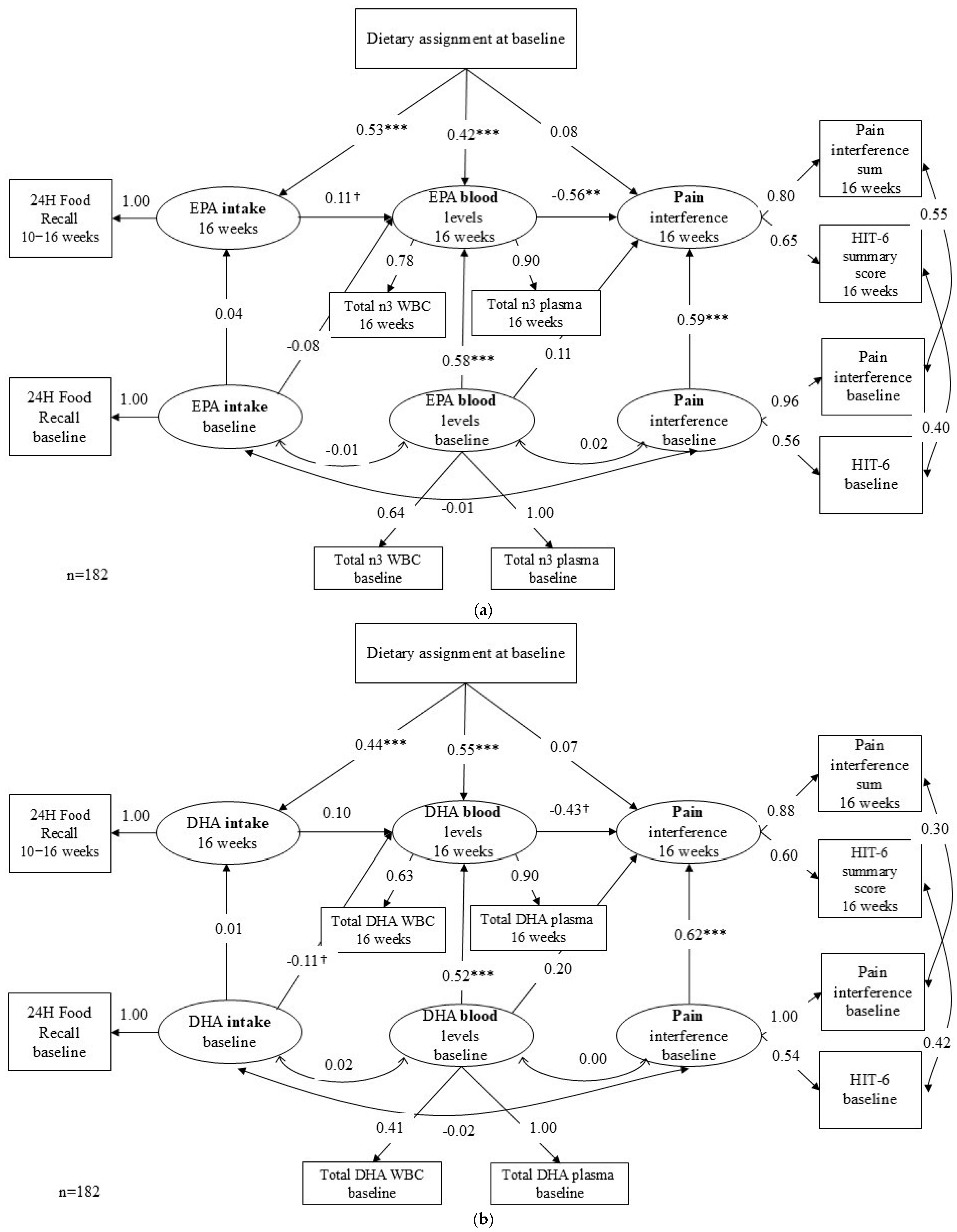 Associations Between Dietary Intakes of Omega-3 Fatty Acids, Blood Levels, and Pain Interference in People with Migraine: A Path Analysis of Randomized Trial Data