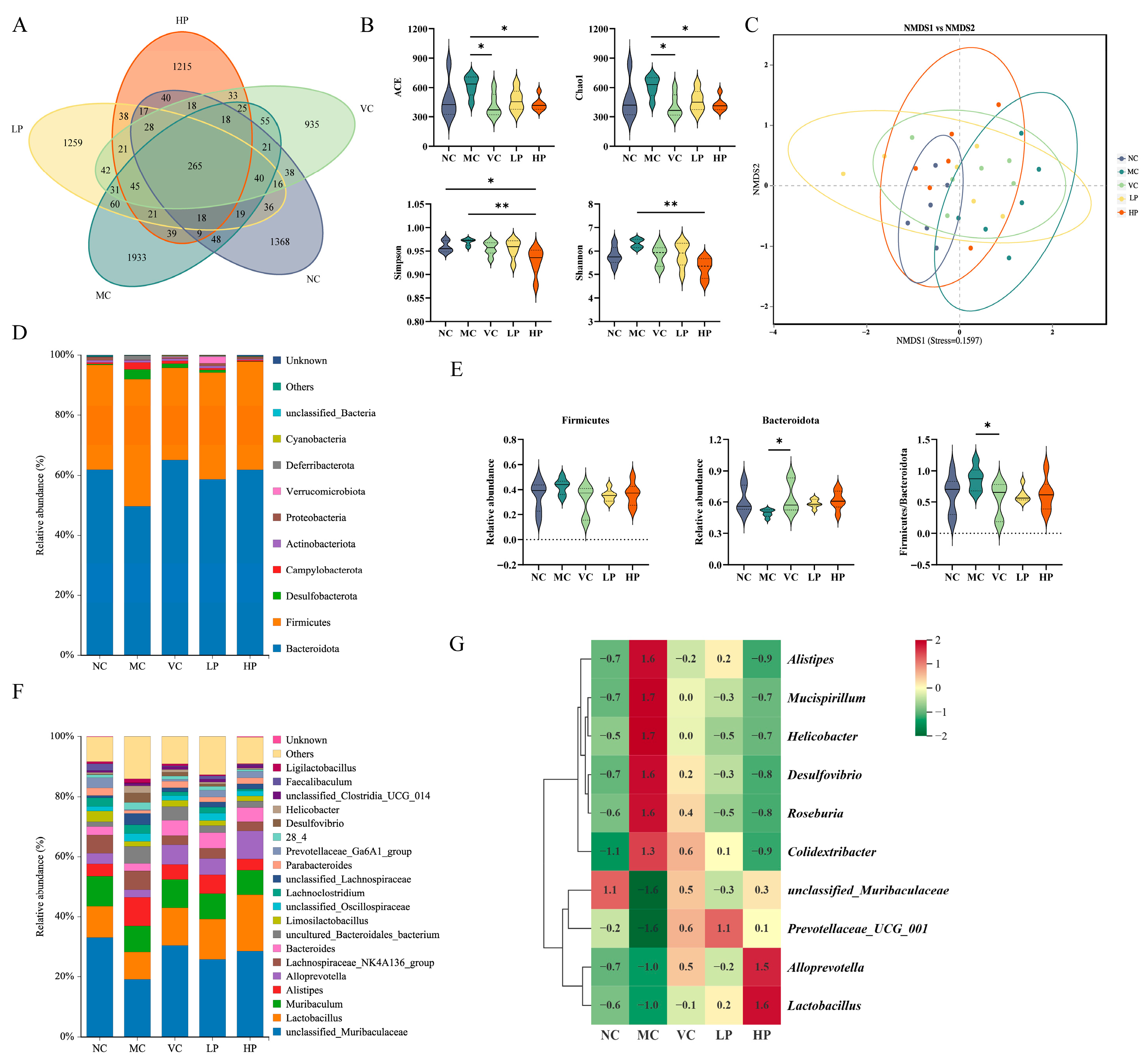 - Sun, W.; Zhu, J.; Qin, G.; Huang, Y.; Cheng, S.; Chen, Z.; Zhang, Y.; Shu, Y.; Zeng, X.; Guo, R. Lonicera japonica polysaccharides alleviate D-galactose-induced oxidative stress and restore gut microbiota in ICR mice. Int. J. Biol. Macromol. 2023, 245, 125517. [Google Scholar] [CrossRef] [PubMed]