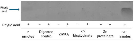 No phytic acid bands were detected post-digestion in the soluble fraction, supporting the observation that the zinc and phytic acid had formed insoluble complexes [10] (Figure 3).
