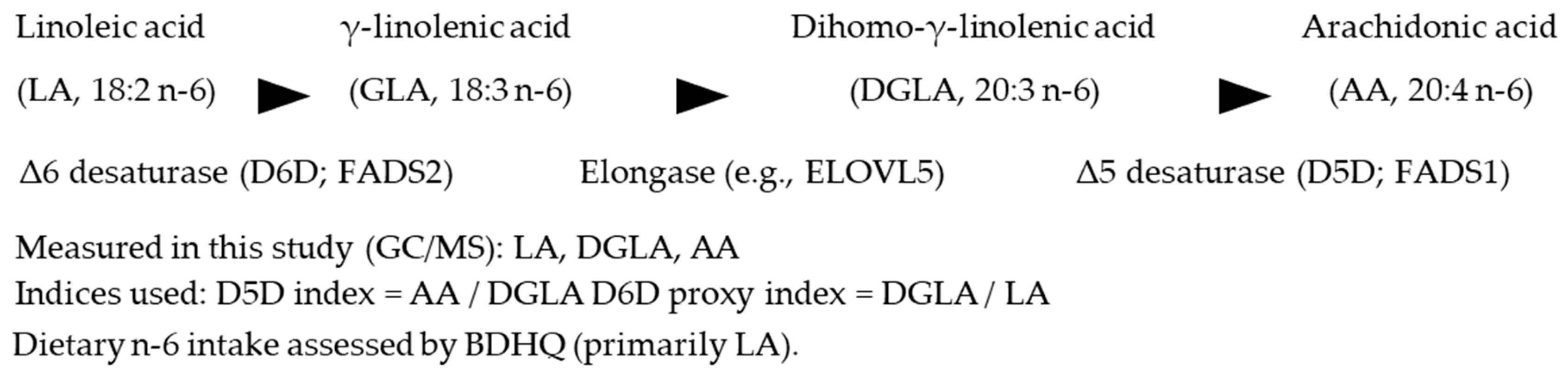 3.3. Serum Fatty Acids and Desaturase Indices