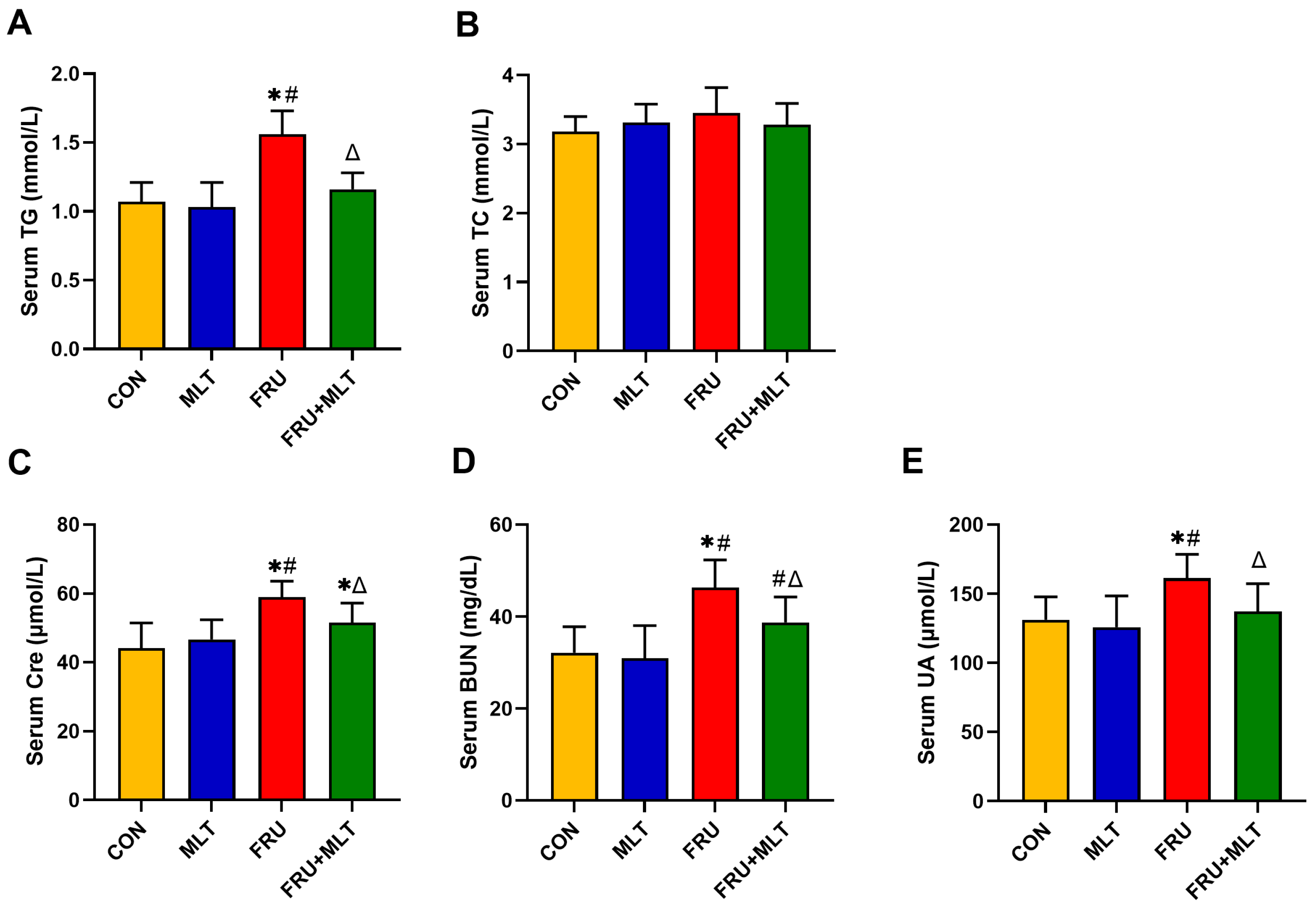 3.2. Effect of MLT on Serum Biochemical Indicators