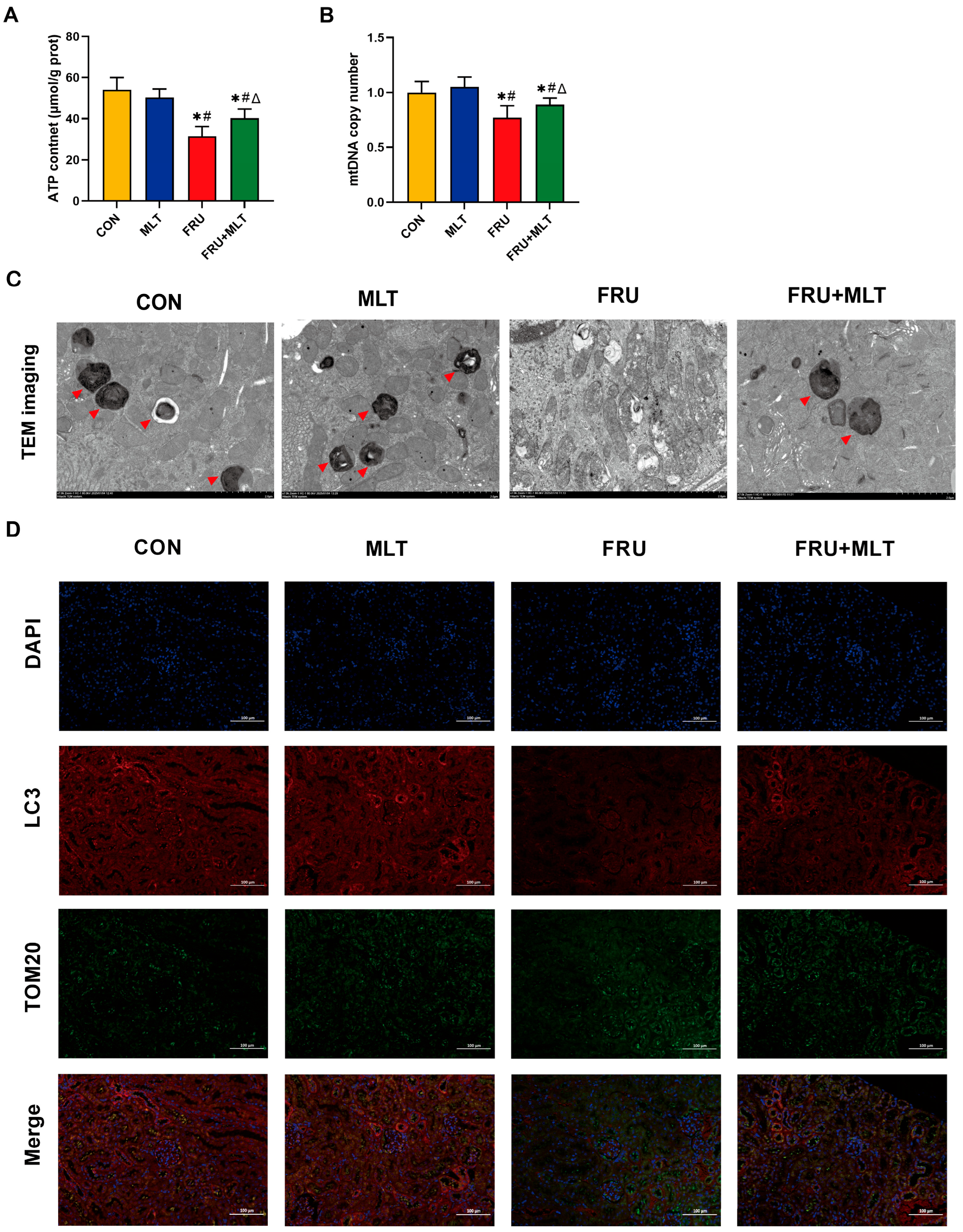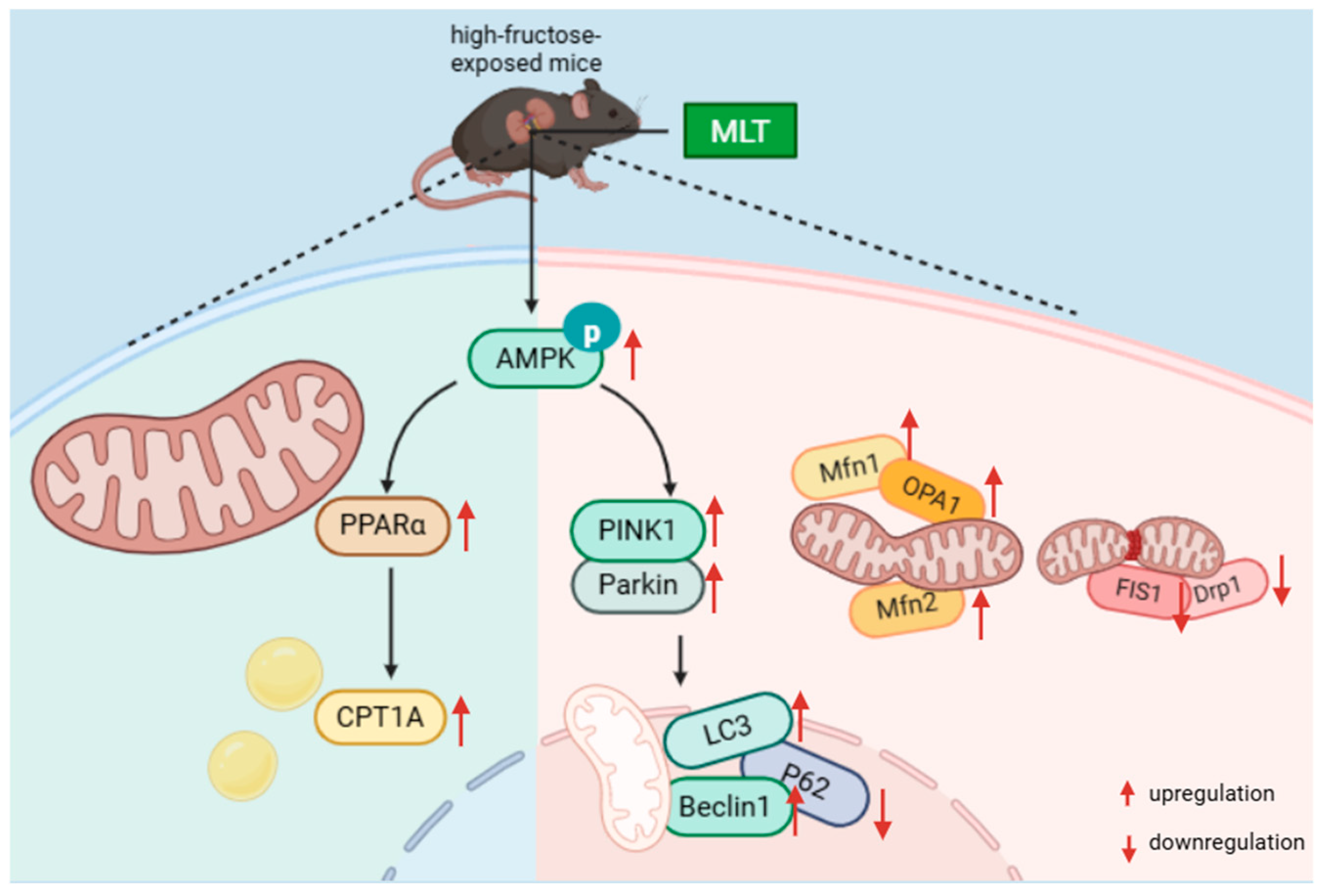 APA StyleMa, Y., Sun, D., Bai, Y., Liu, W., Bai, X., Liu, Z., Kong, T., Wang, P., Liang, X., Zhang, Z., Liang, H., & Zhang, H. (2026). Melatonin Alleviates High-Fructose-Induced Renal Injury in Male Mice, Which Might Be Associated with the Regulation of Mitophagy and Fatty Acid Oxidation. Nutrients, 18(1), 68. https://doi.org/10.3390/nu18010068