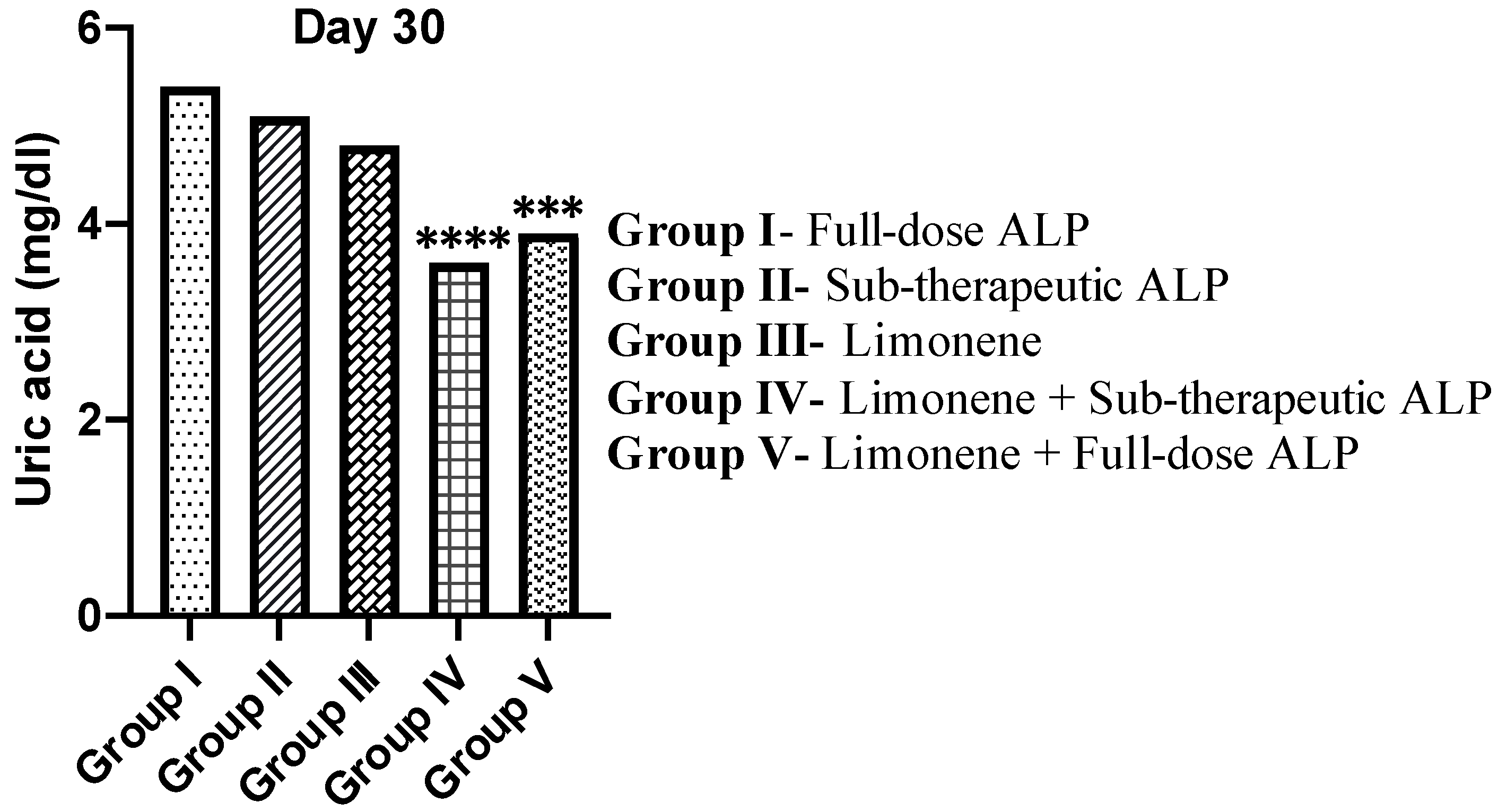 3.3.1. Effect of Limonene on Serum Uric Acid