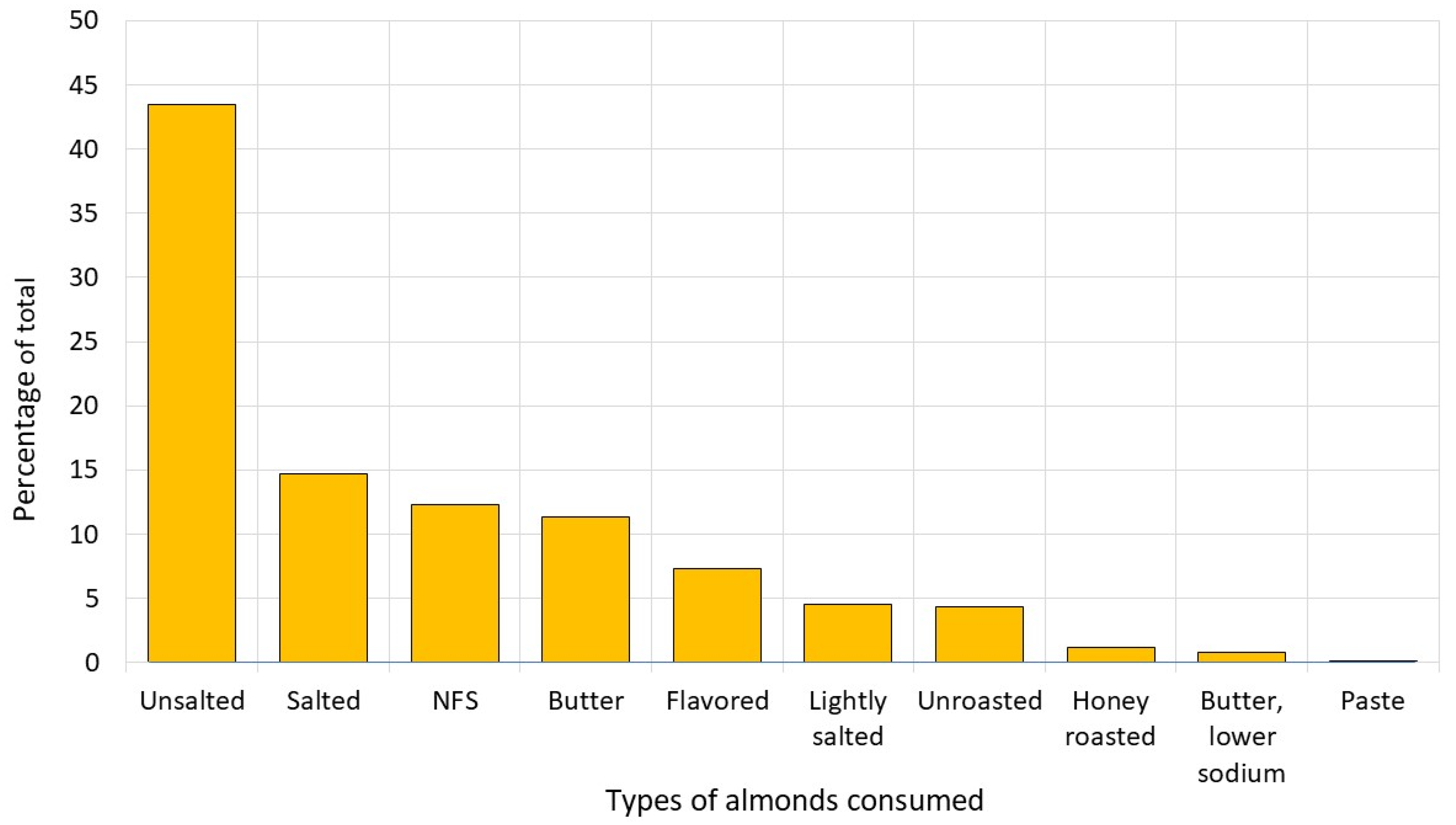 - U.S. Department of Agriculture, Economic Research Service. Almonds Lead Increase in Tree Nut Consumption. Available online: https://www.ers.usda.gov/data-products/charts-of-note/chart-detail?chartId=93152 (accessed on 13 October 2025).