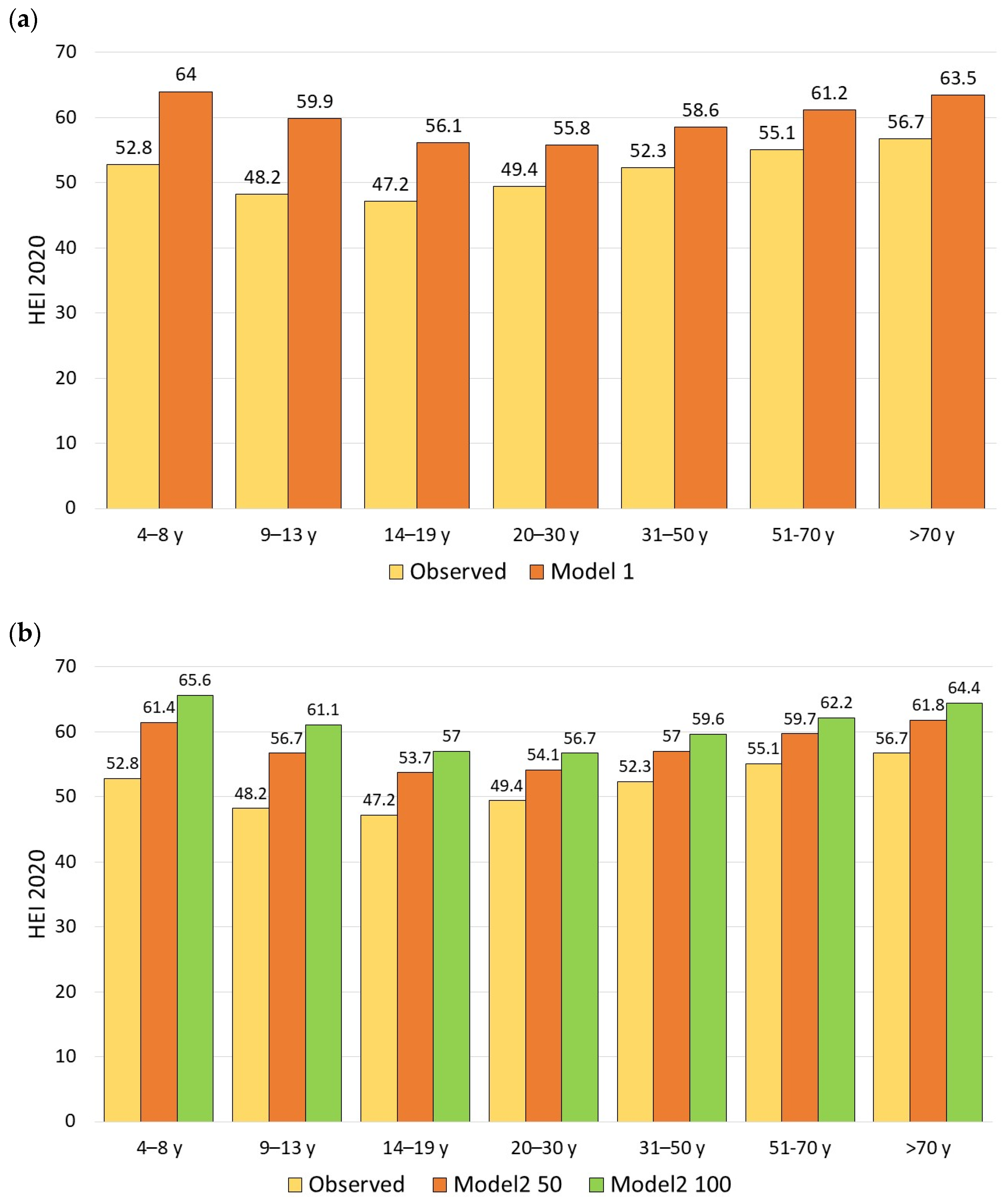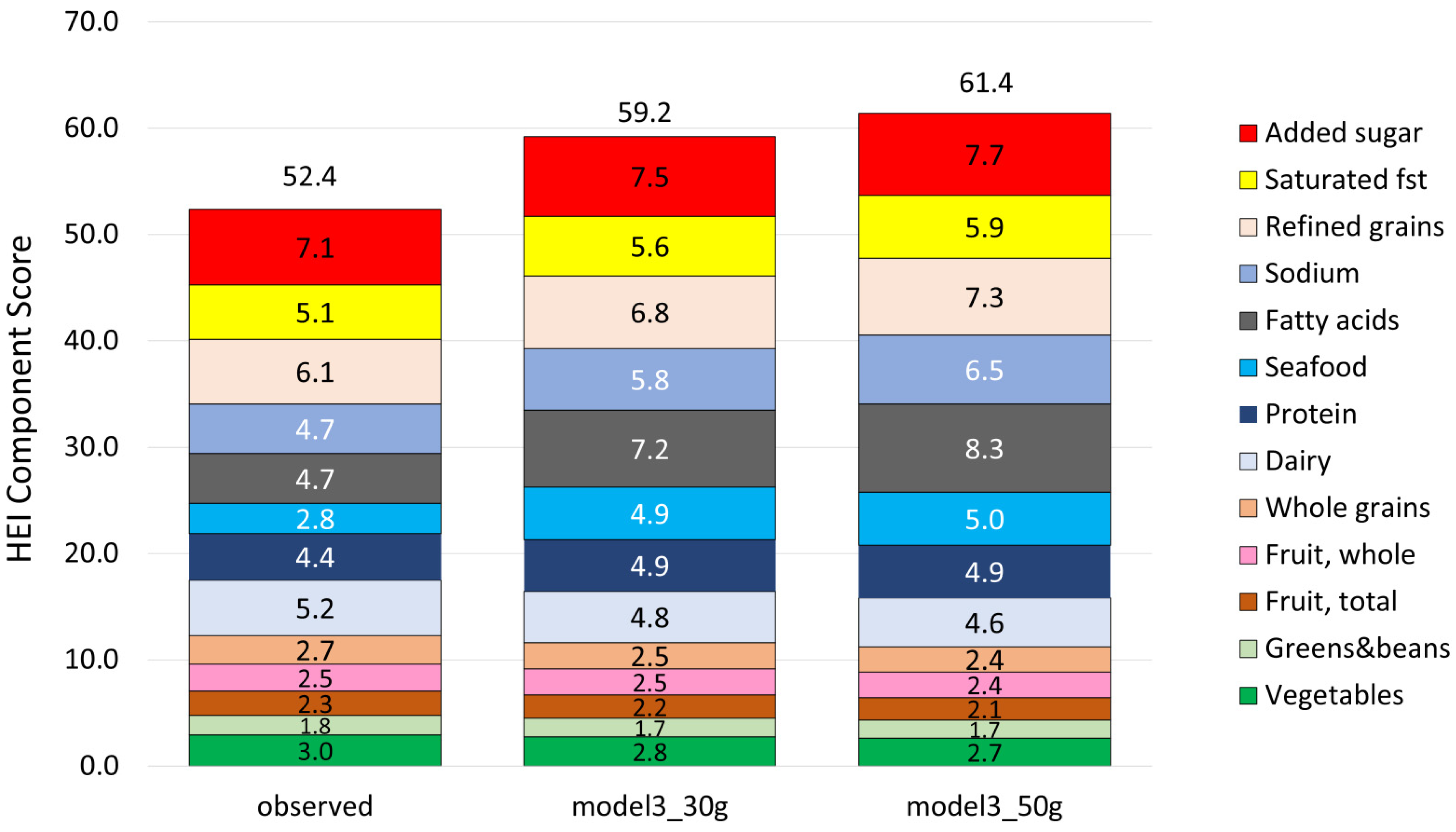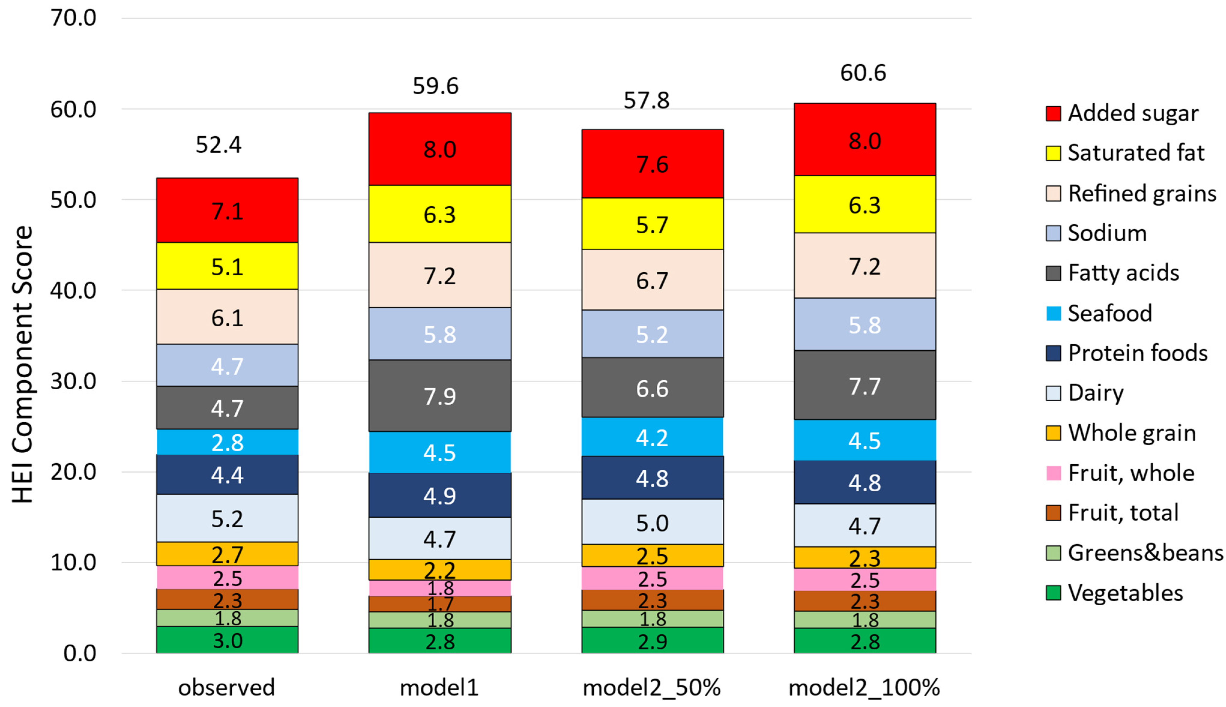 3.4. Substitution Modeling (Model 1 and 2) and HEI-2020 Sub Scores