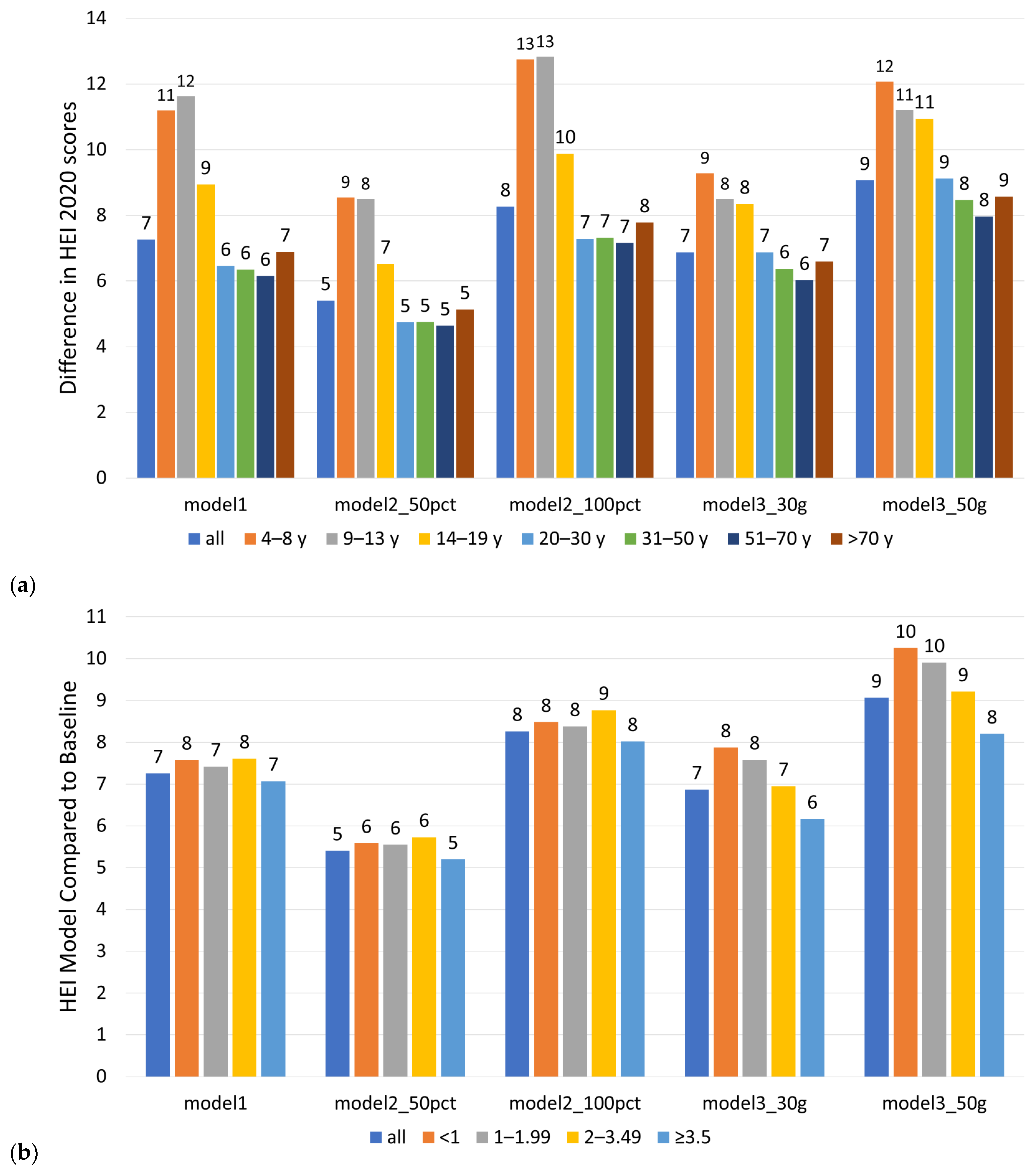 3.6. Greatest Benefits for Children and Adolescents in All Models