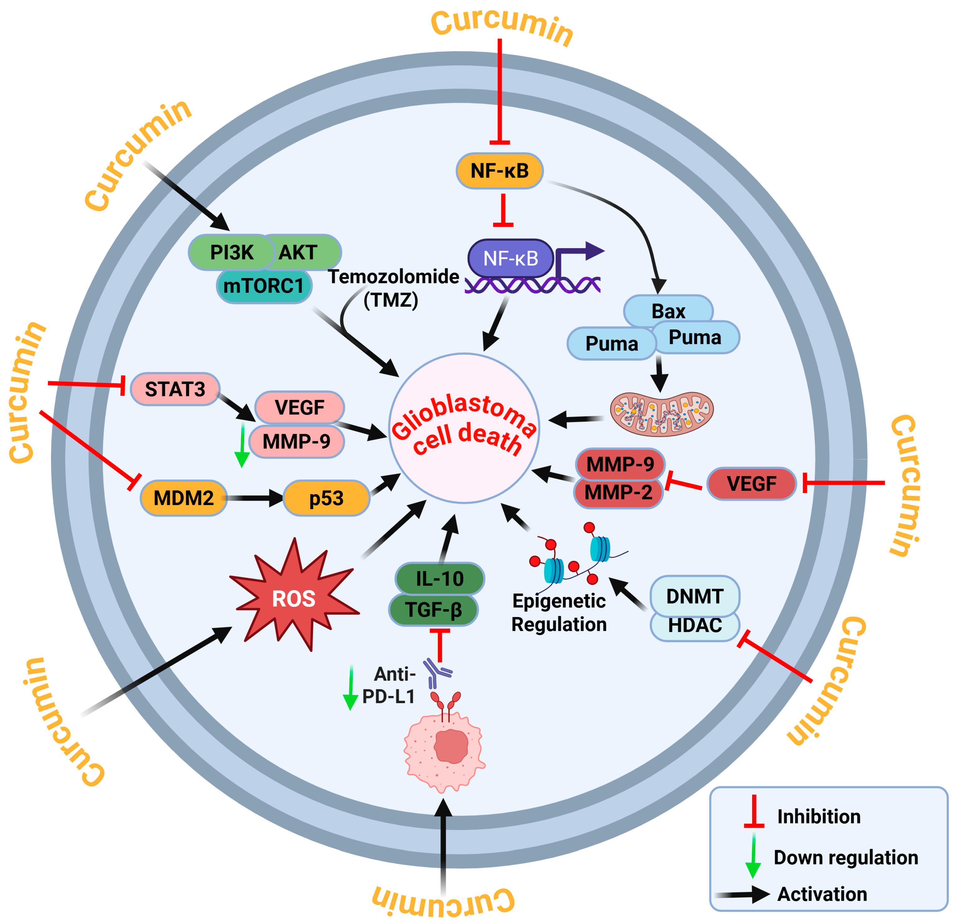2. Curcumin’s Molecular Mechanisms and Targets in Glioblastoma