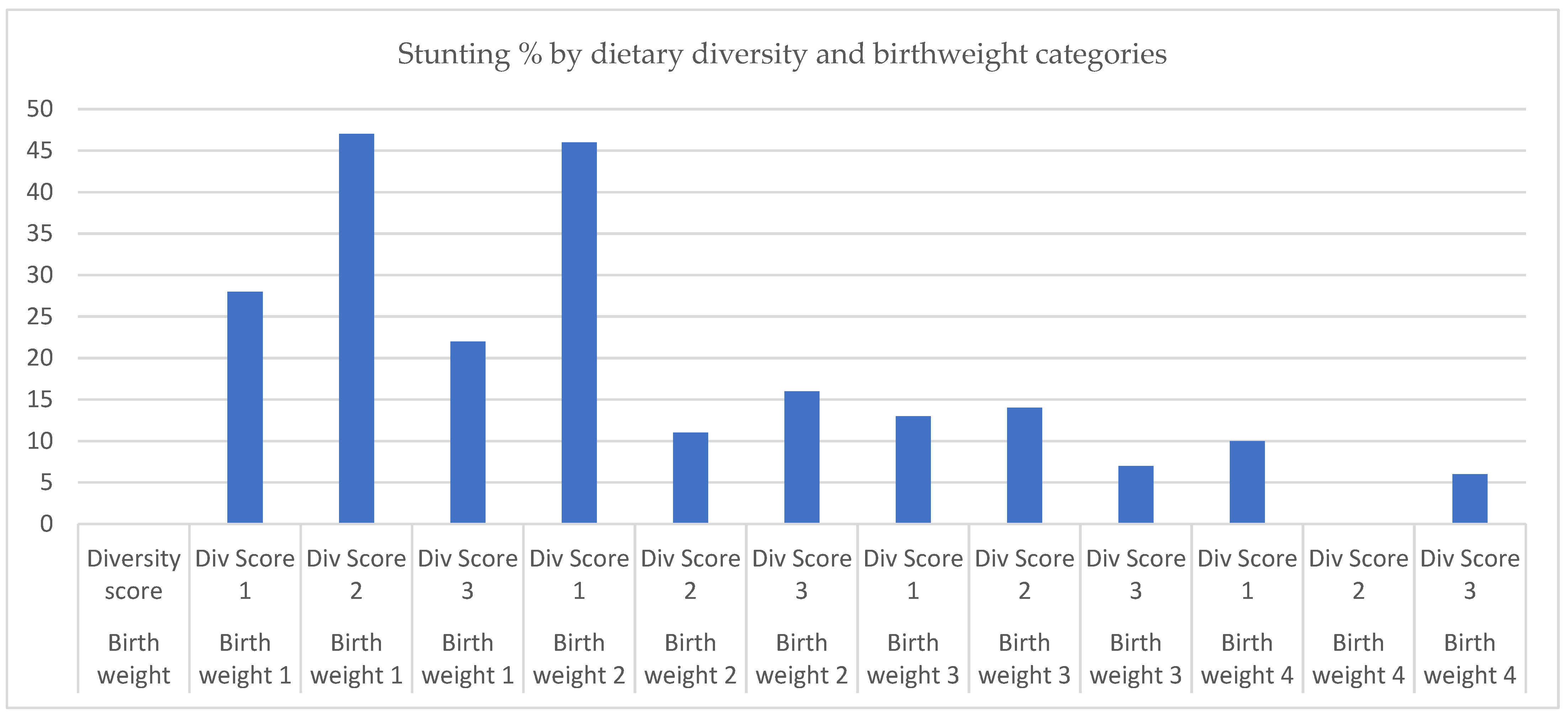 | Birthweight quartiles X dietary diversity categories | ||||