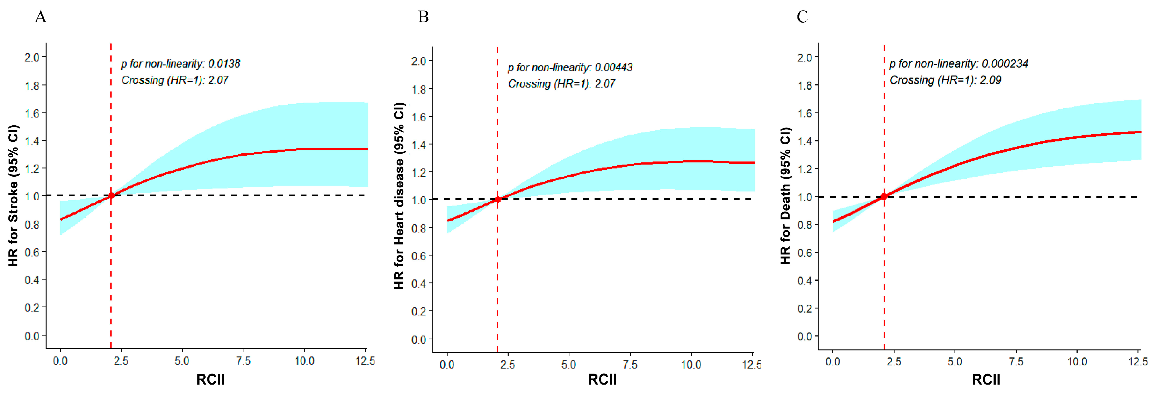 3.2. Associations of RCII with the Risk of Stroke, Heart Disease and All-Cause Mortality