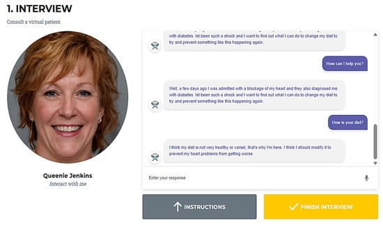 - The user selects the virtual patient/chatbot with whom he/she wants to interact.