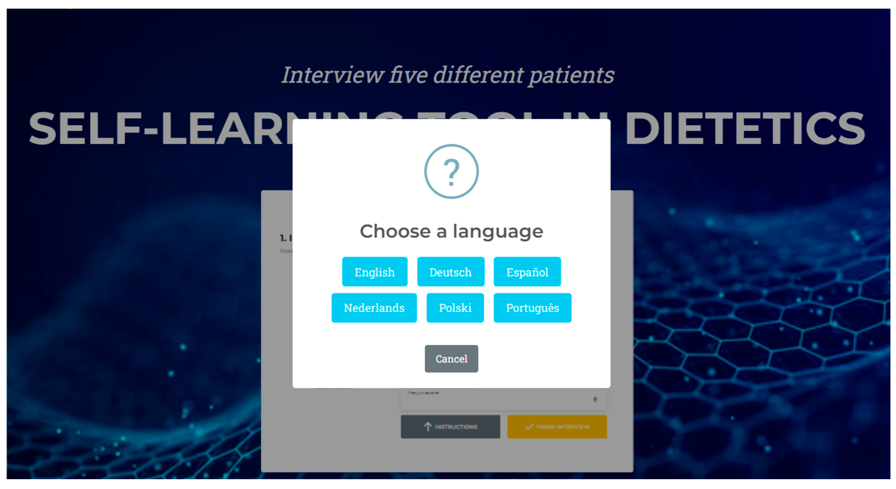 A needs assessment was conducted with input from academic staff, students, and practicing professionals to identify gaps in digital competences and practical training. Five virtual patients’ scenarios were created, each based on real clinical history, anthropometric and biochemical data, dietary assessment, and interactive chatbot dialog for simulated anamnesis. It was decided that each chatbot would focus on a prevalent pathology, ultimately selecting gastroenterology, type 1 diabetes, cardiovascular disease and diabetes, obesity, and renal disease as the clinical areas of focus. Each case was paired with self-assessment questions based on IDNT to reinforce learning,