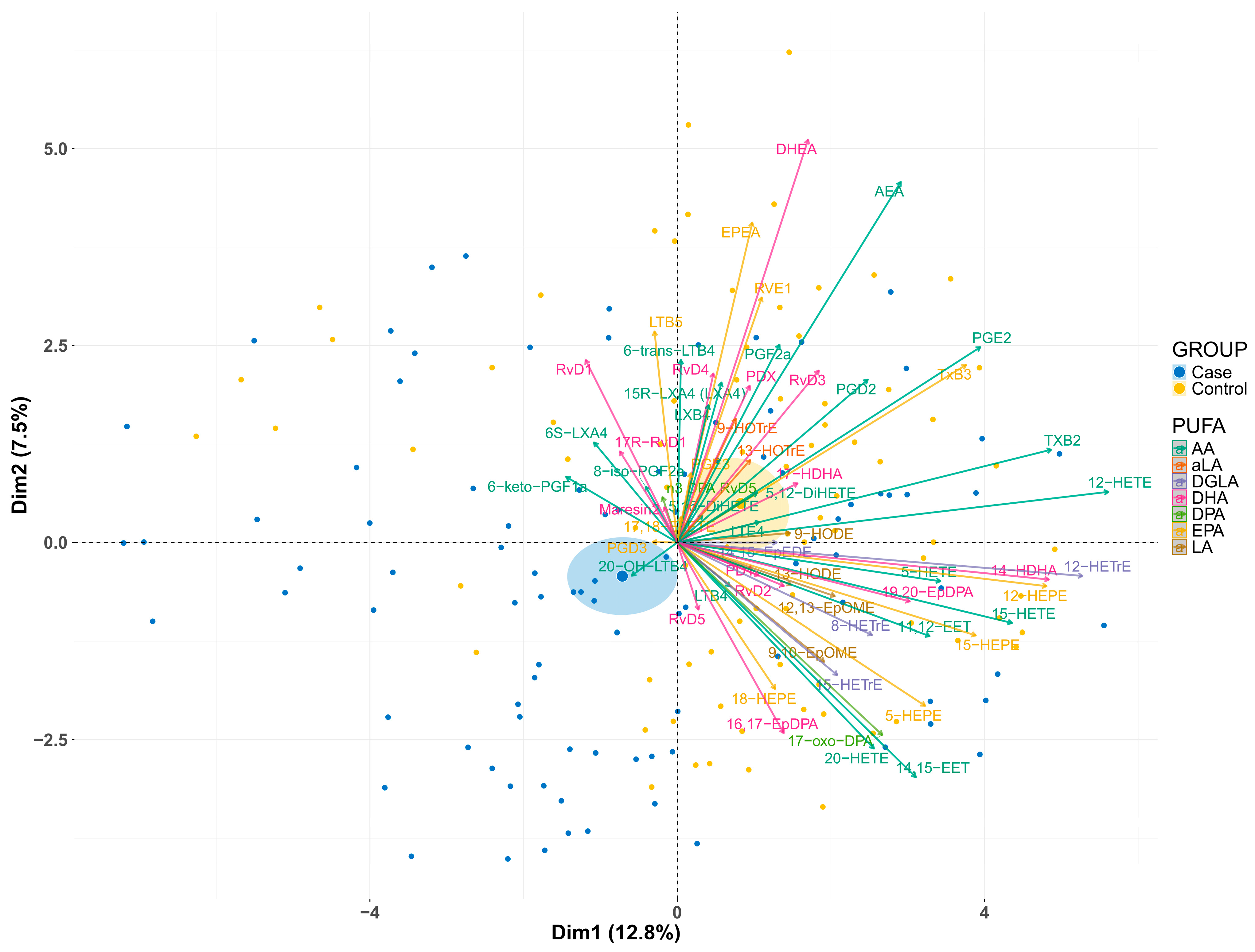 3.2. Contribution of Individual PUFAs to Lipidomic Differences