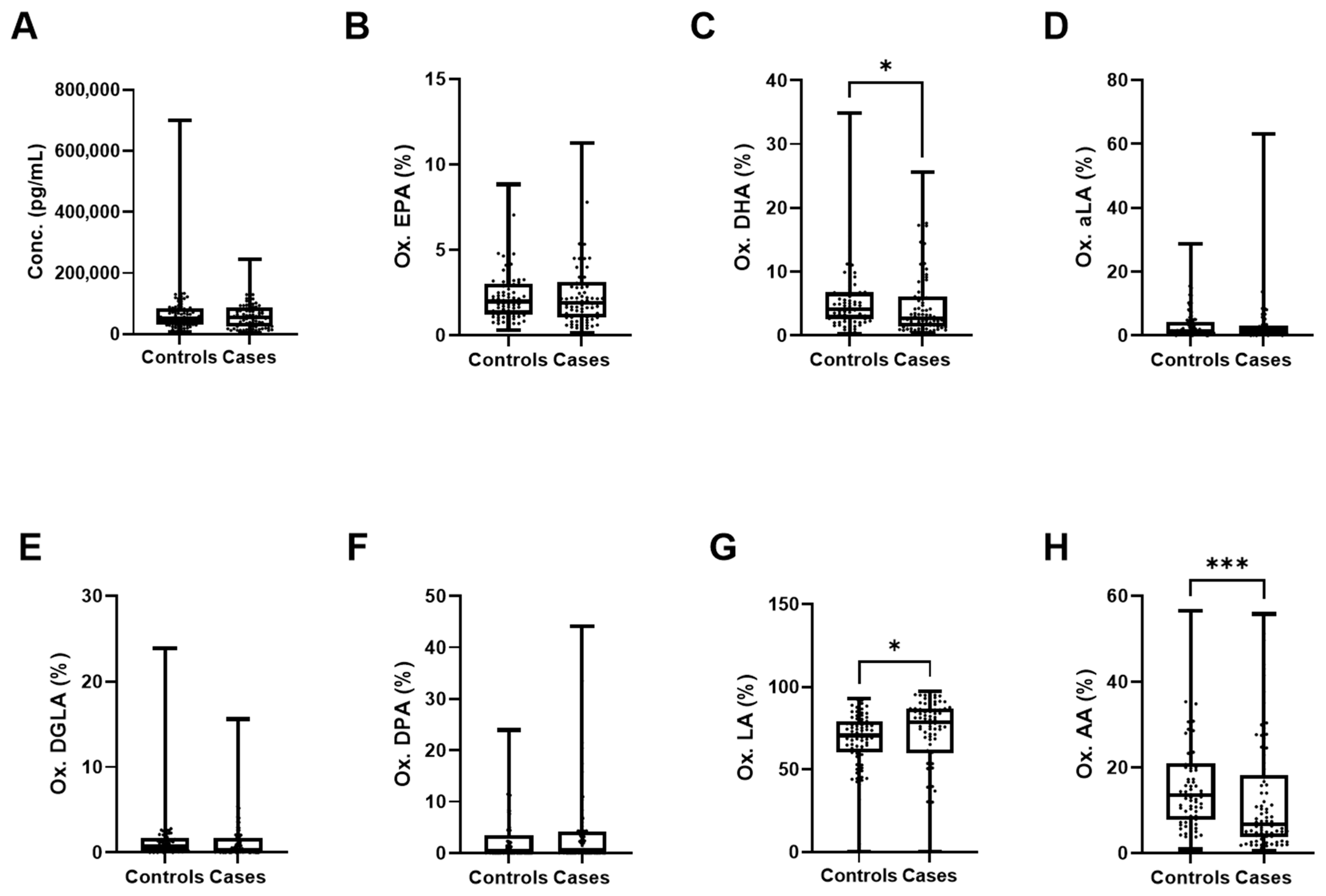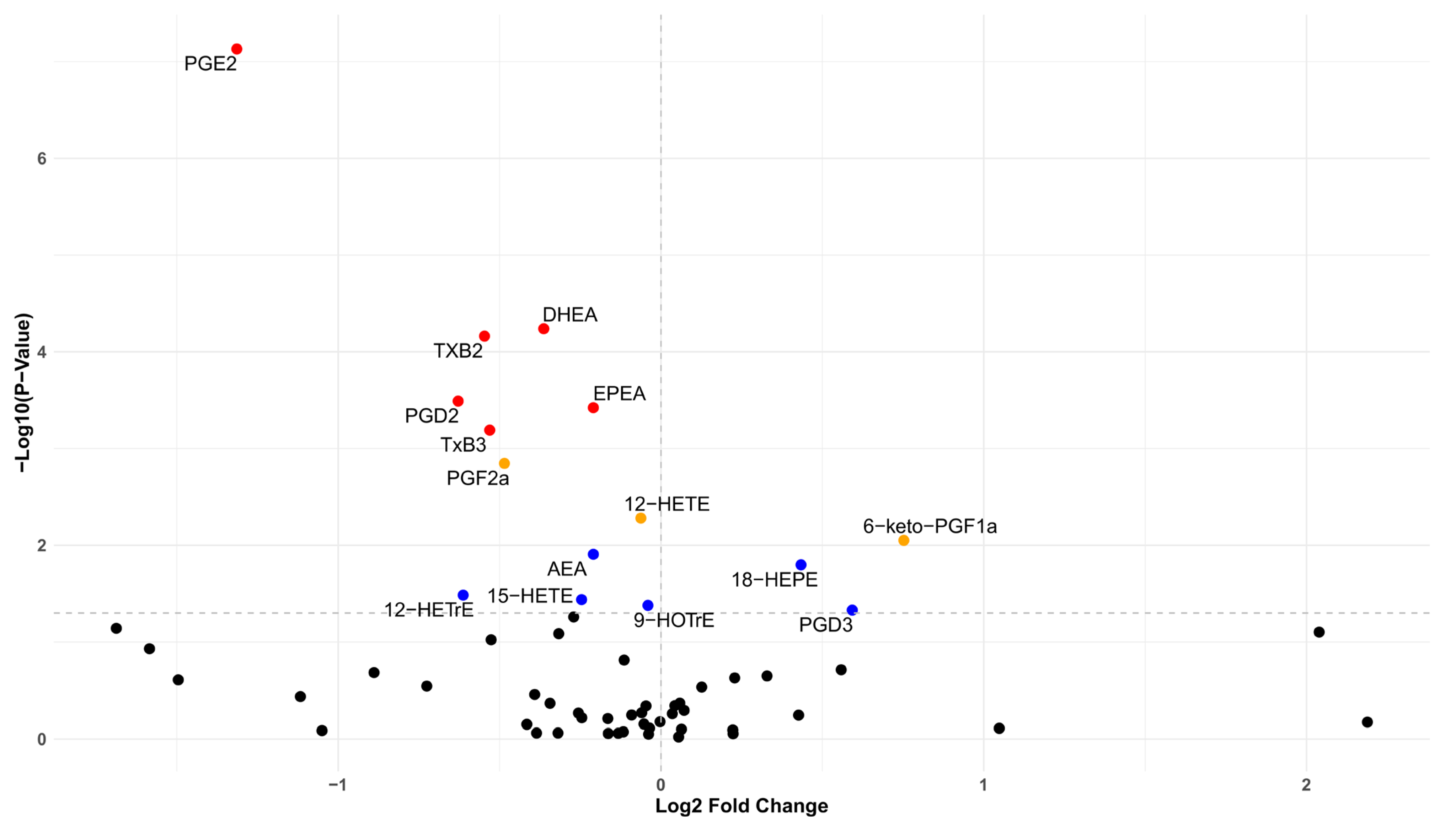 2.3. Measurement of Oxylipins and Endocannabinoids in Plasma