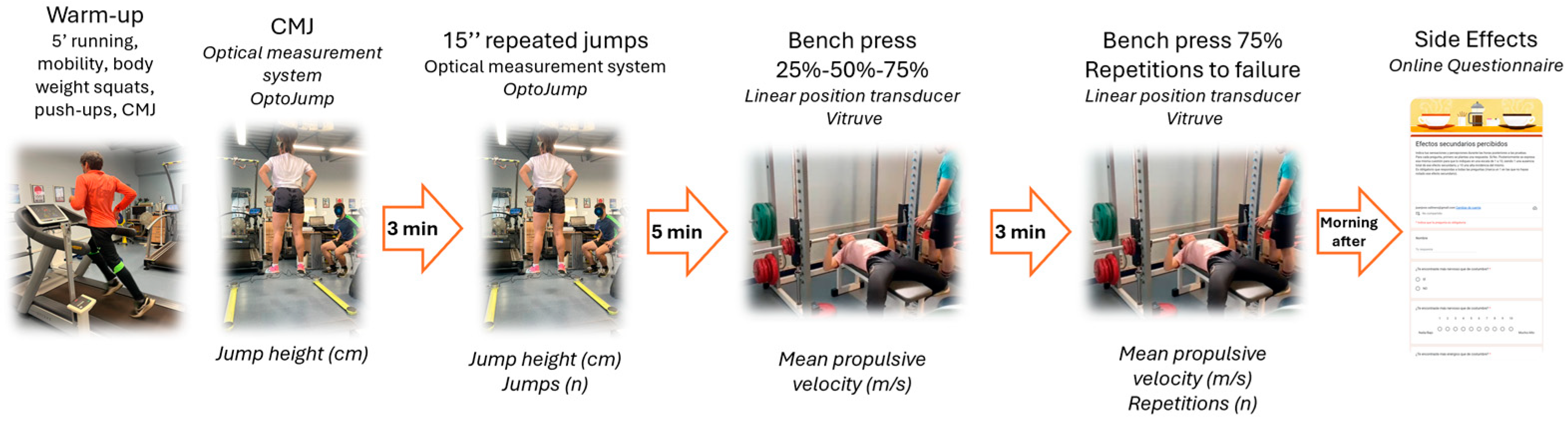 - Ortiz-Sánchez, D.; Bravo-Sánchez, A.; Ramírez-delaCruz, M.; Abián, P.; Abián-Vicén, J.; Ortiz-Sánchez, D.; Bravo-Sánchez, A.; Ramírez-delaCruz, M.; Abián, P.; Abián-Vicén, J. Placebo Effect of Caffeine on Physiological Parameters and Physical Performance. Nutrients 2024, 16, 1405. [Google Scholar] [CrossRef]