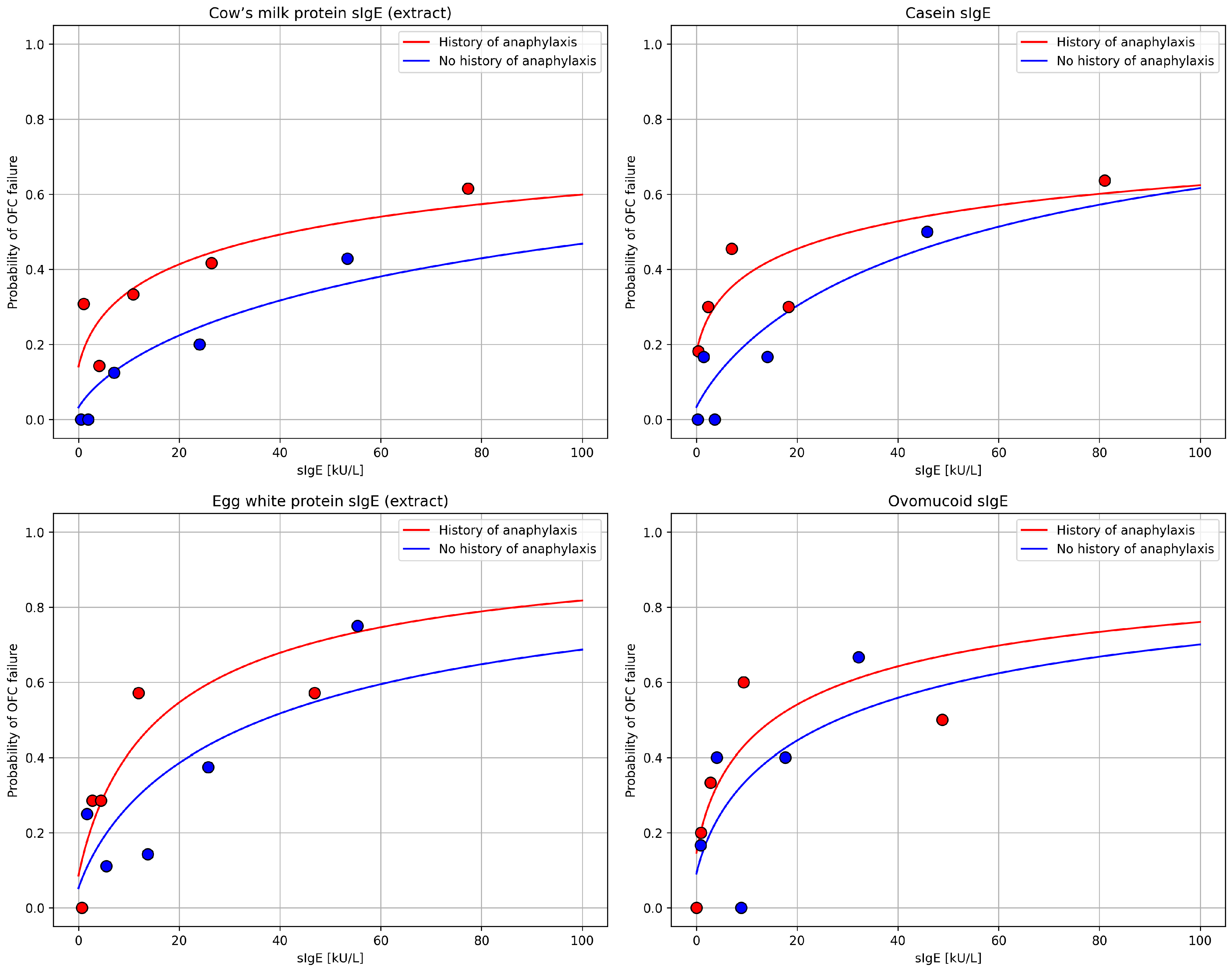 3.4. Specific IgE Concentration as a Predictor of OFC Outcome in Studied Groups