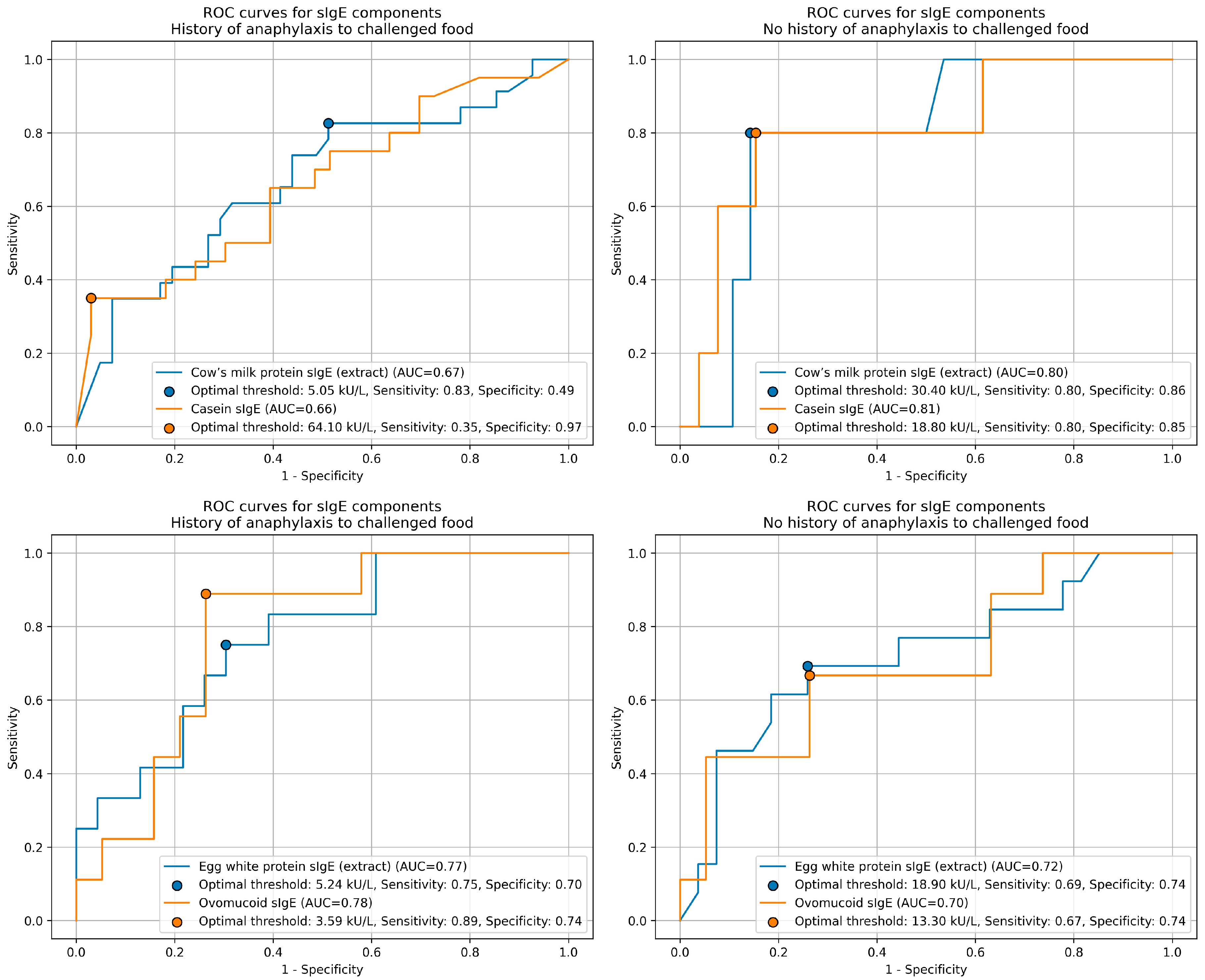 - Chong, K.W.; Sultana, R.; Lee, M.P.; Tan, L.L.; Goh, A.; Goh, S.H.; Loh, W. Diagnostic Accuracy of Skin Prick Test, Food-Specific IgE and Component Testing for IgE-Mediated Peanut, Egg, Milk and Wheat Allergy. Clin. Exp. Allergy 2025, 55, 187–189. [Google Scholar] [CrossRef]