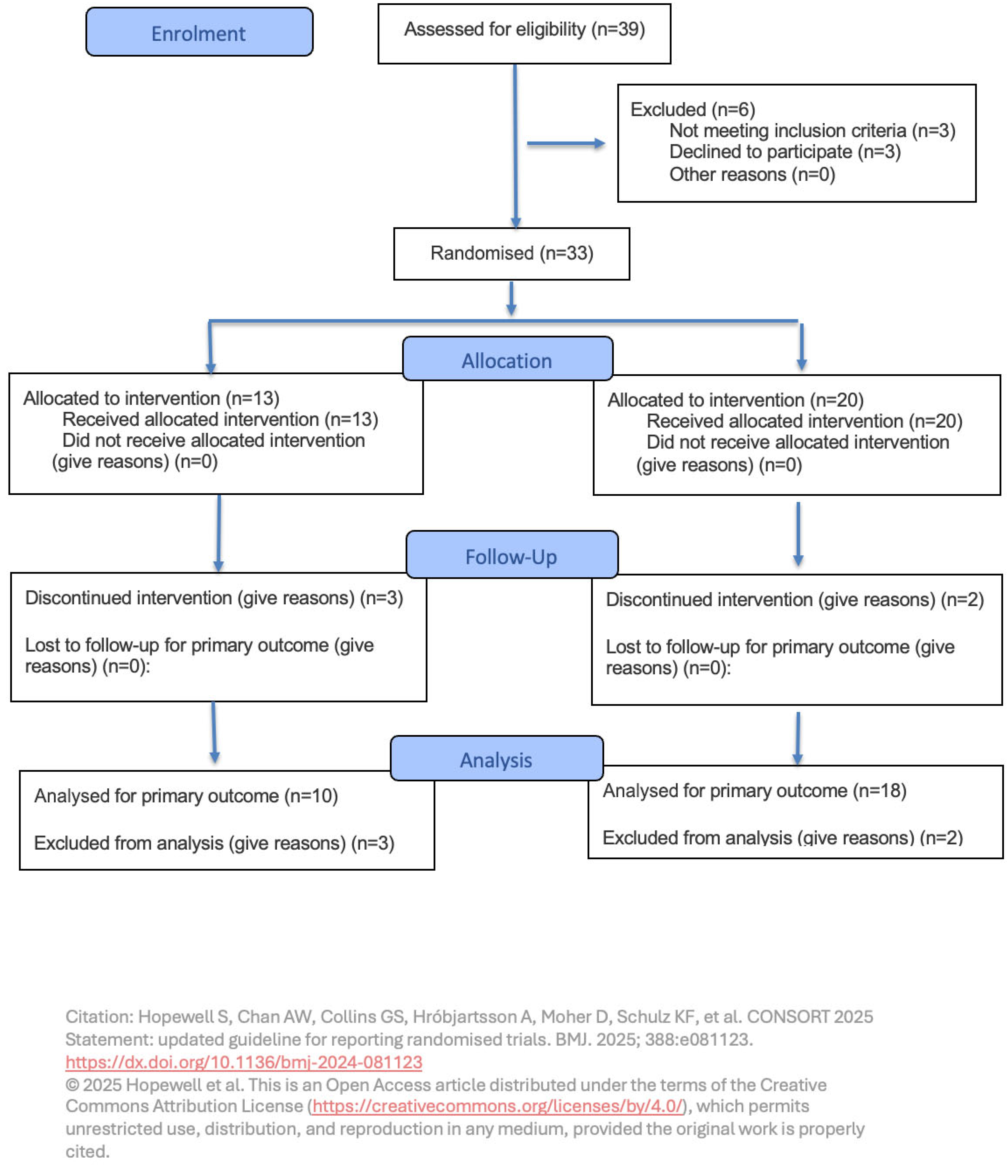 - Hopewell, S.; Chan, A.-W.; Collins, G.S.; Hróbjartsson, A.; Moher, D.; Schulz, K.F.; Tunn, R.; Aggarwal, R.; Berkwits, M.; Berlin, J.A.; et al. CONSORT 2025 statement: Updated guideline for reporting randomised trials. BMJ 2025, 389, 081123. [Google Scholar] [CrossRef]