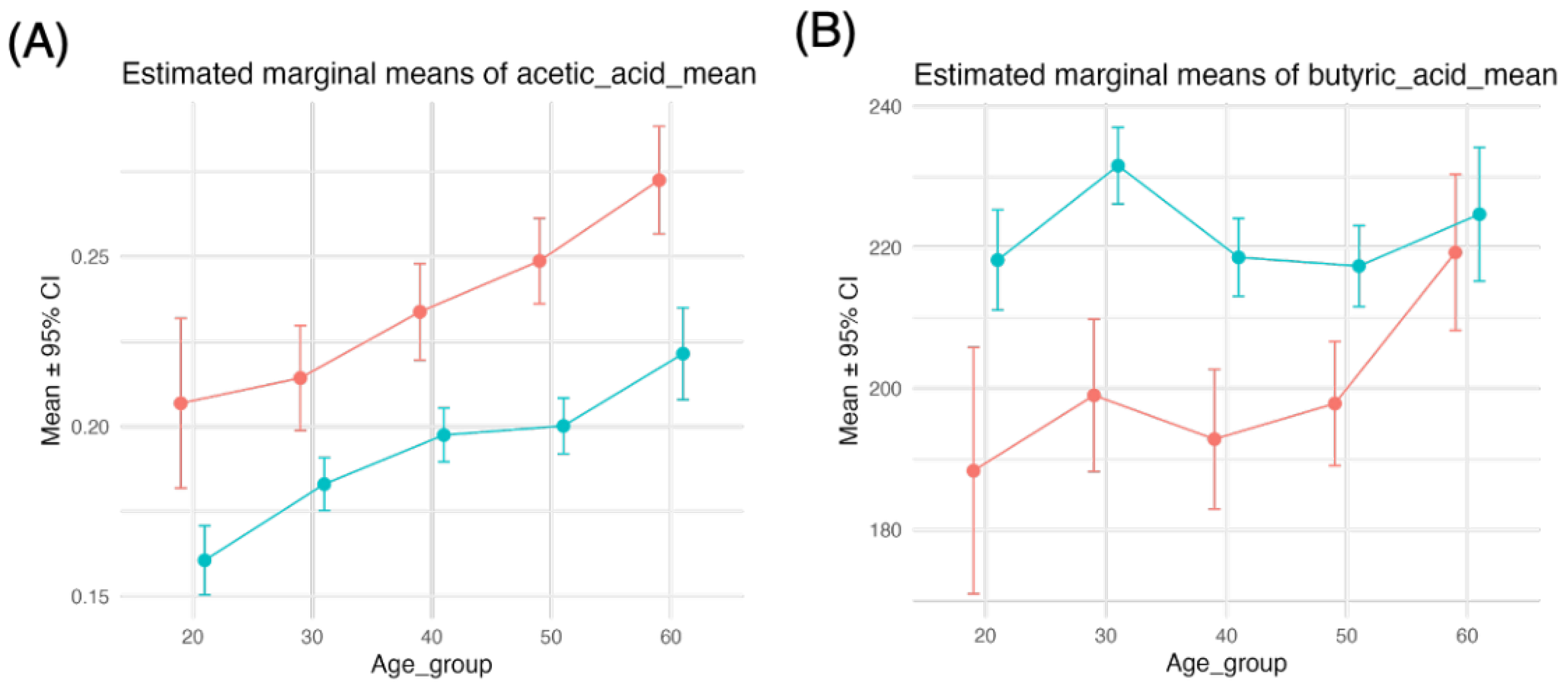 3.2.3. Associations Between Acetic Acid and Age, Sex, and Their Interaction