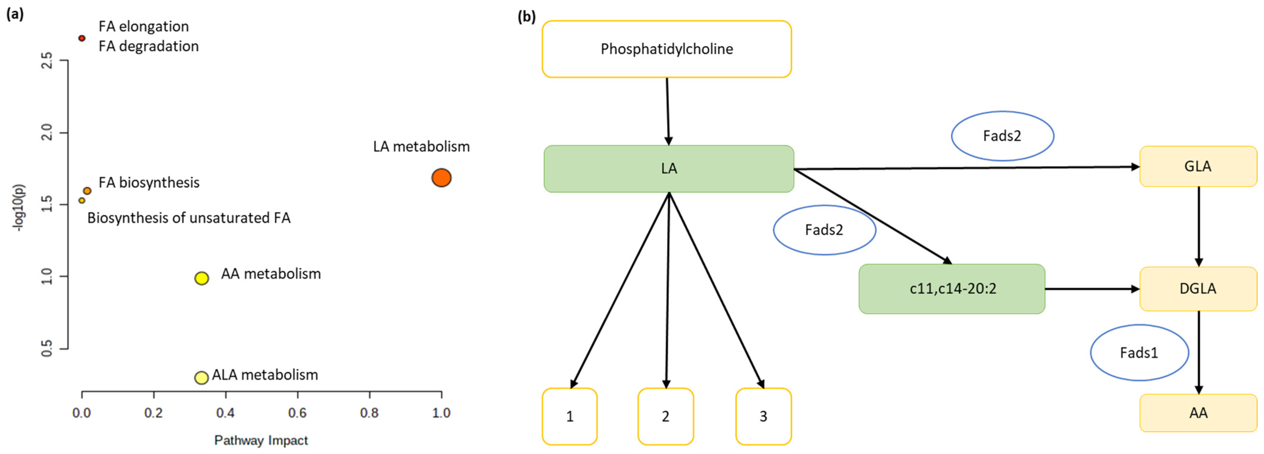 3.5. Consumption of nLC in the Season Mainly Affected the Metabolism of LA, Whereas the Intake of LC Did Not Produce Any Changes