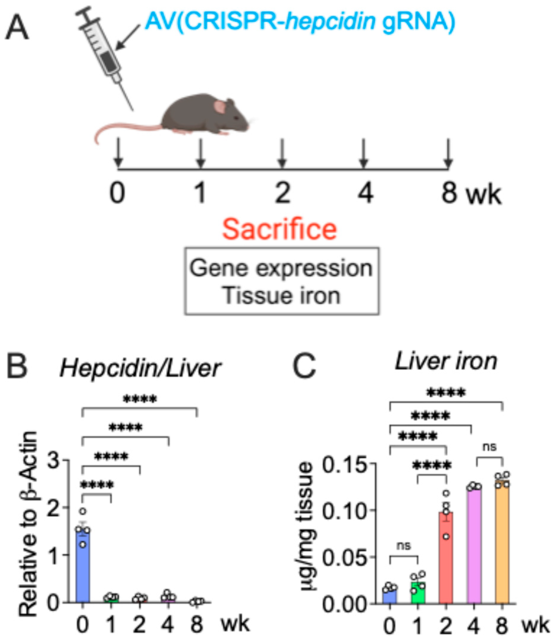3.1. A Cre-Independent Iron Overload Model via Adenovirus-Mediated Rapid and Durable Hepcidin KO