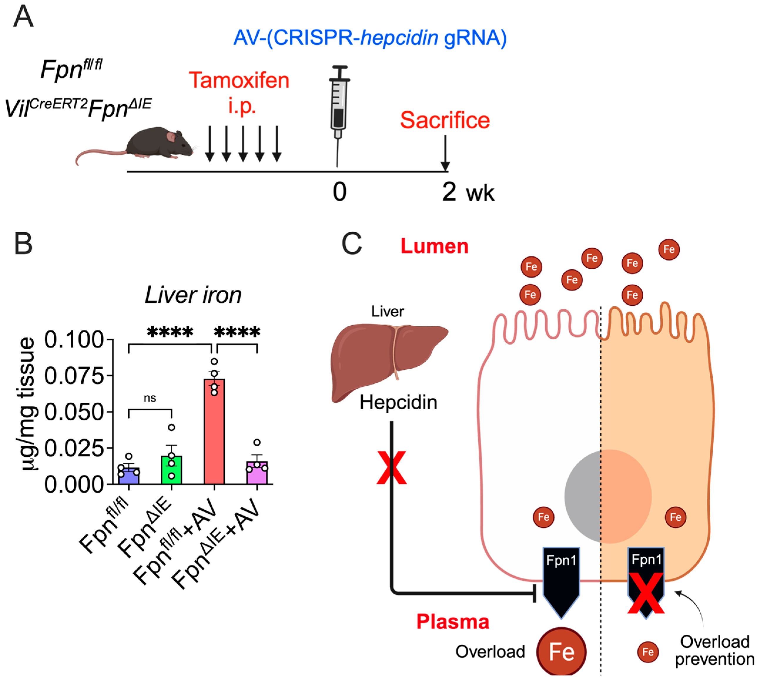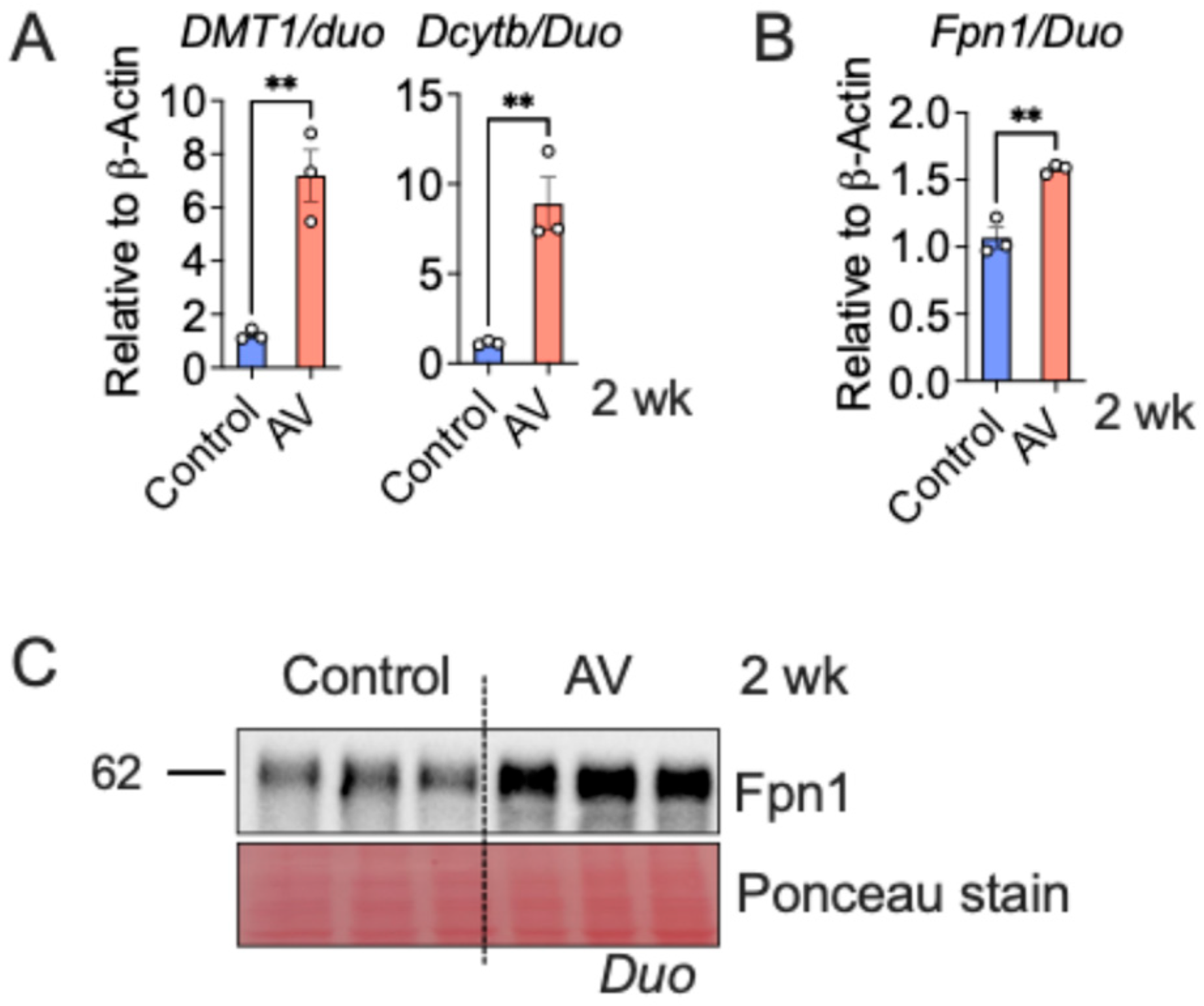 3.3. AV-Hepc KO Leads to Enterocyte Iron Depletion