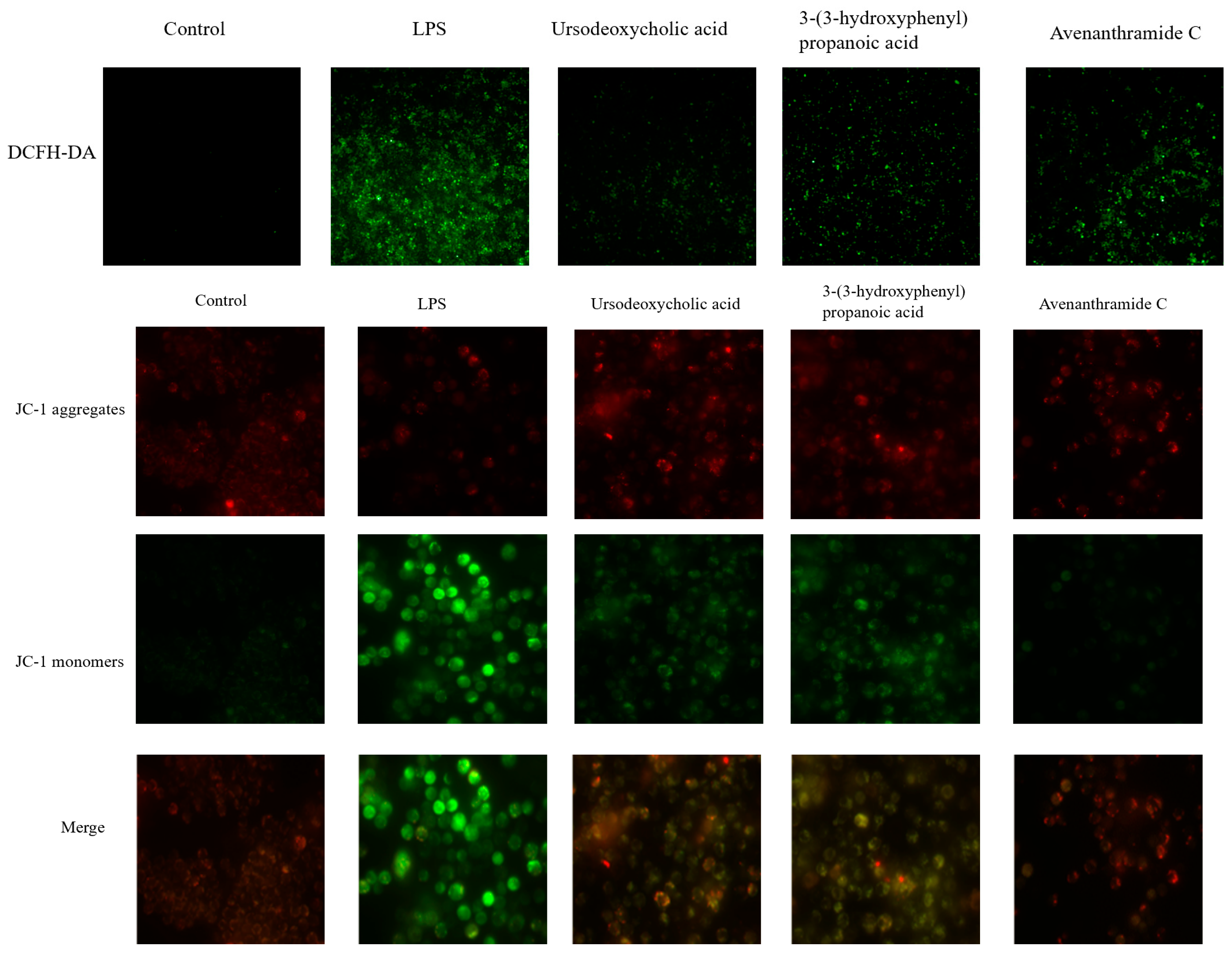 Treatment with UDCA, 3-HPP, and AVC significantly reduced ROS accumulation, with UDCA demonstrating the most pronounced antioxidant effect. This suggests that these metabolites can effectively counteract LPS-induced oxidative stress.
