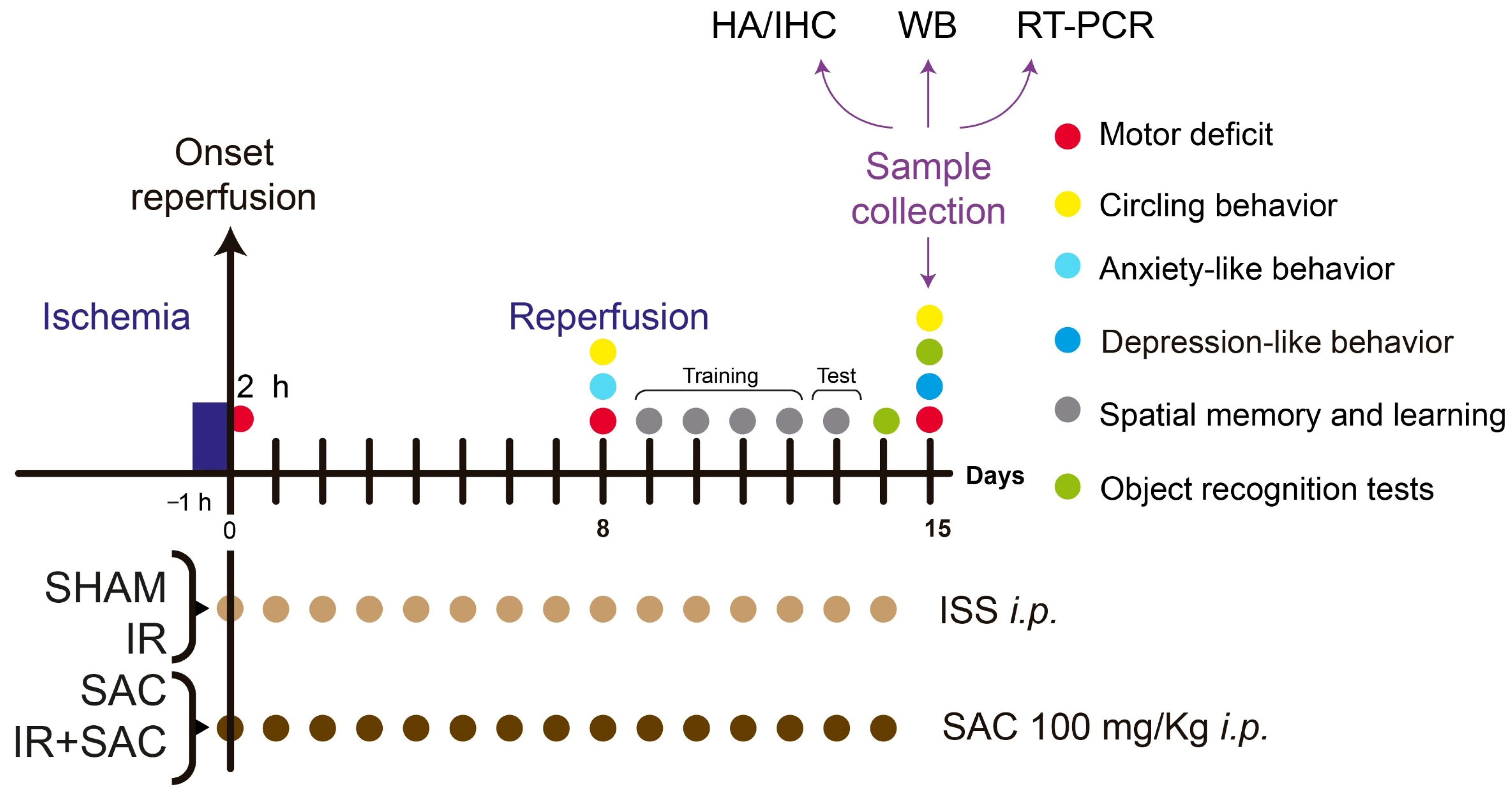 - SAC, animals subjected to the dissection procedure without occlusion and treated with SAC.