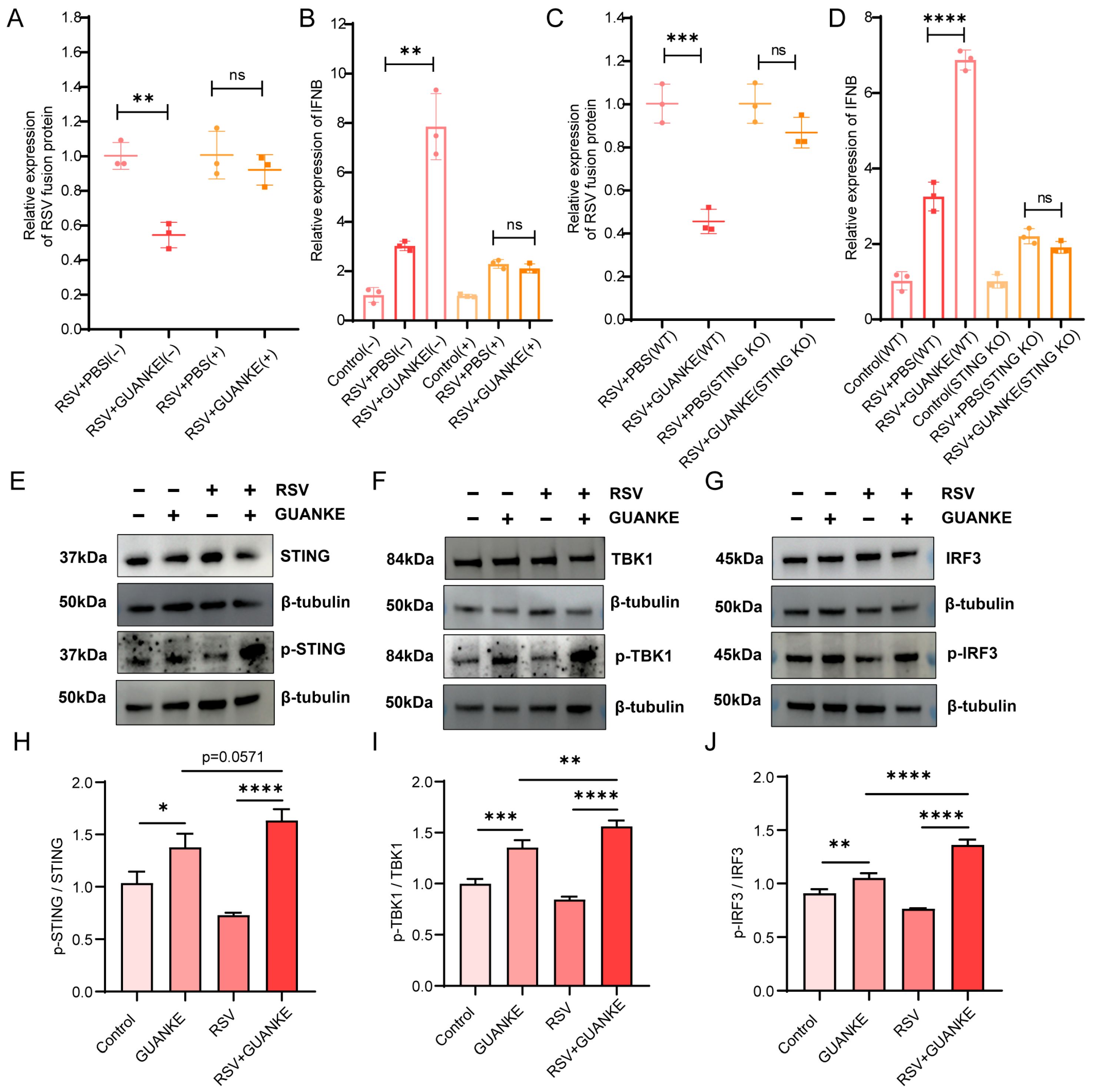 3.6. Lactiplantibacillus plantarum GUANKE Exerts Antiviral Effects Against RSV by Activating Intracellular Signaling Pathway STING-TBK1-IRF3-IFN