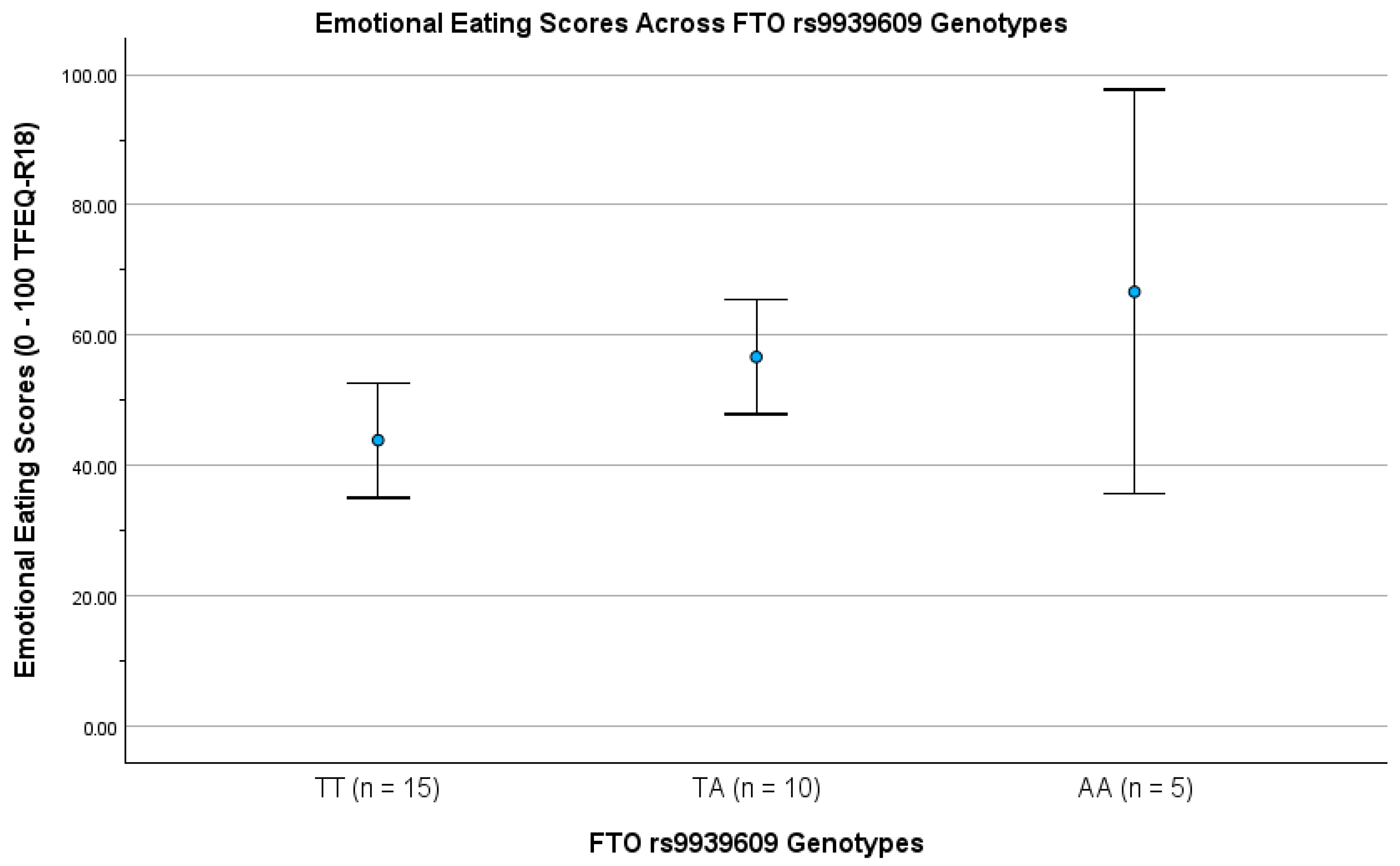 | FTO rs9939609 | Emotional eating | 4.16 | 0.027 * | 0.236 |
