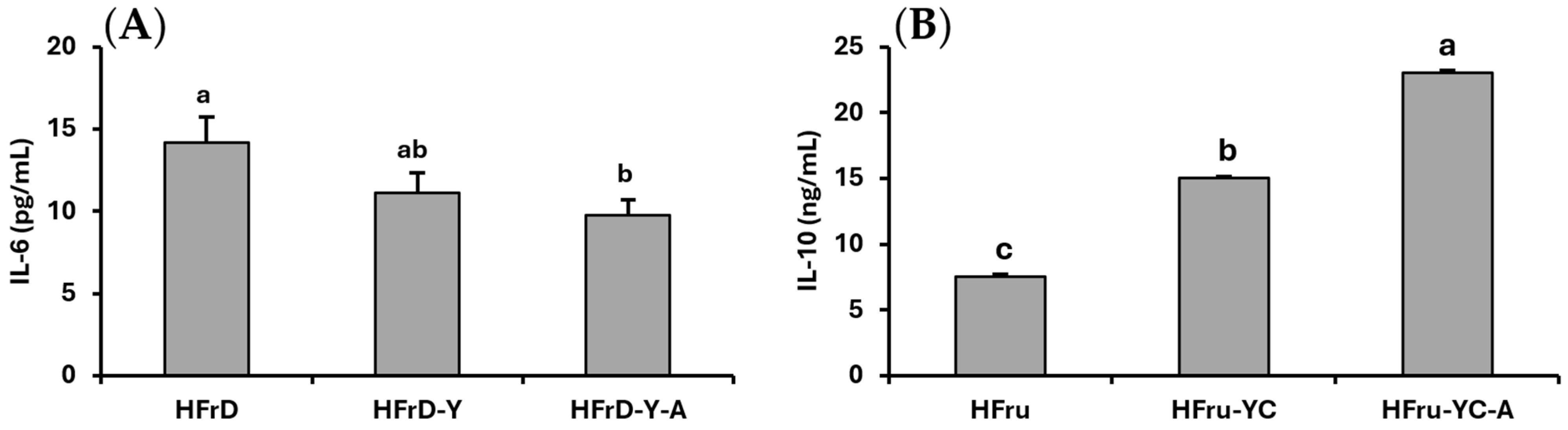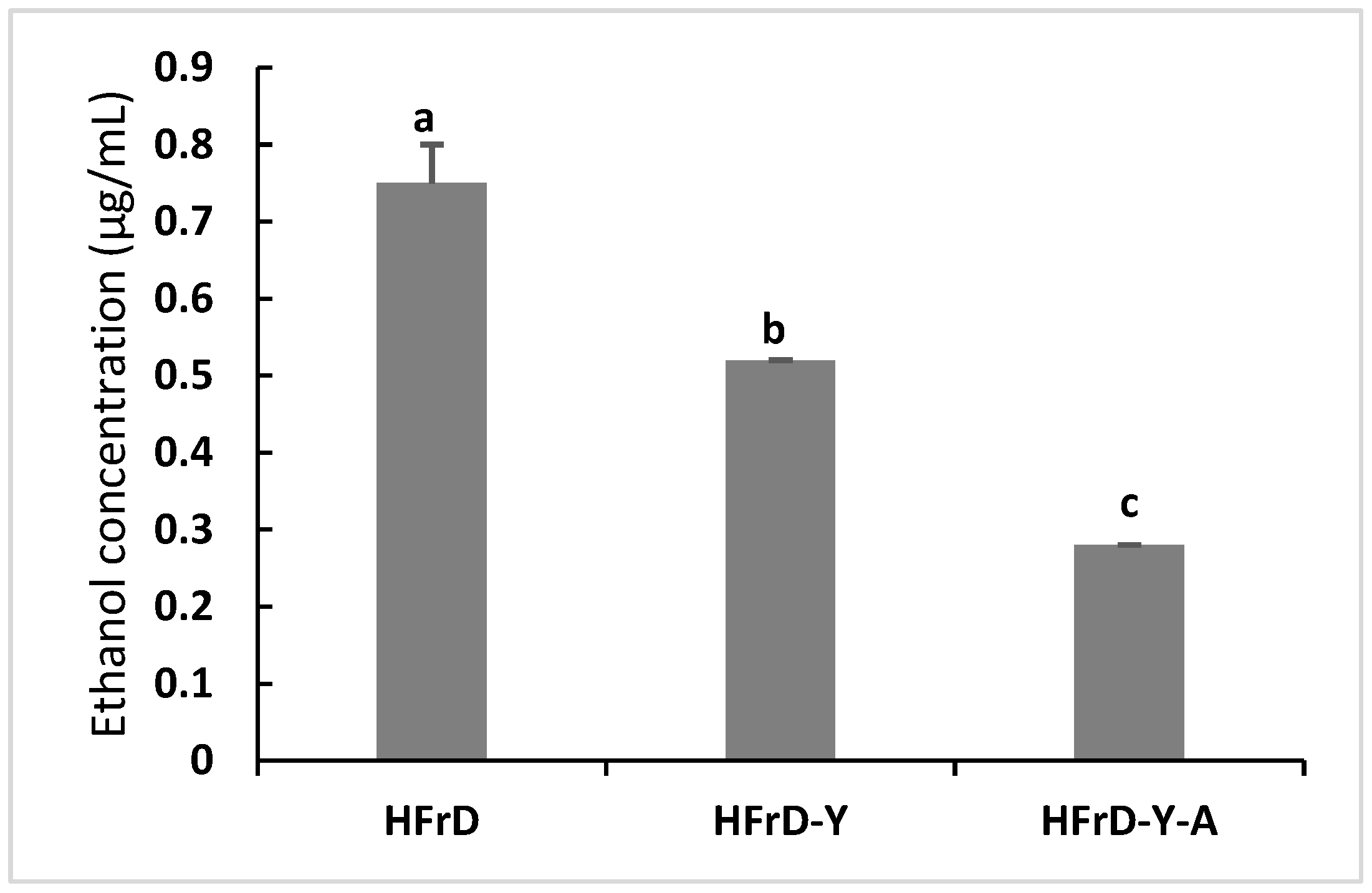 | HFrD-Y-A | 26.6 ± 3.1 c | 54.35 ± 5.4 bc | 2.63 ± 0.4 c |