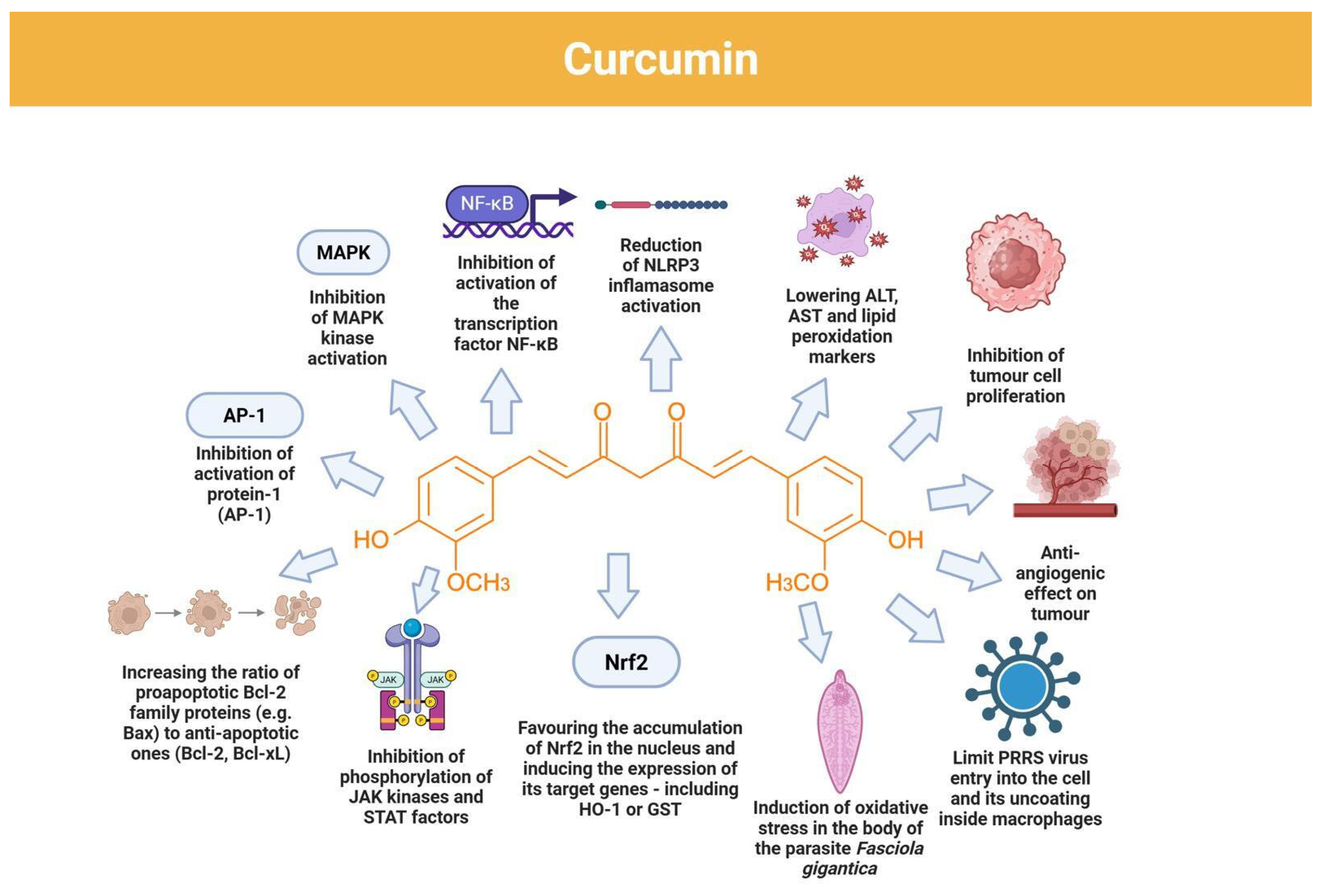 In infection-related liver injury models, it is important to distinguish between direct antiviral effects of curcumin, which require demonstration of altered viral replication or burden, and indirect hepatoprotective effects mediated by immunomodulation, reduced macrophage activation, and attenuation of inflammatory signaling.