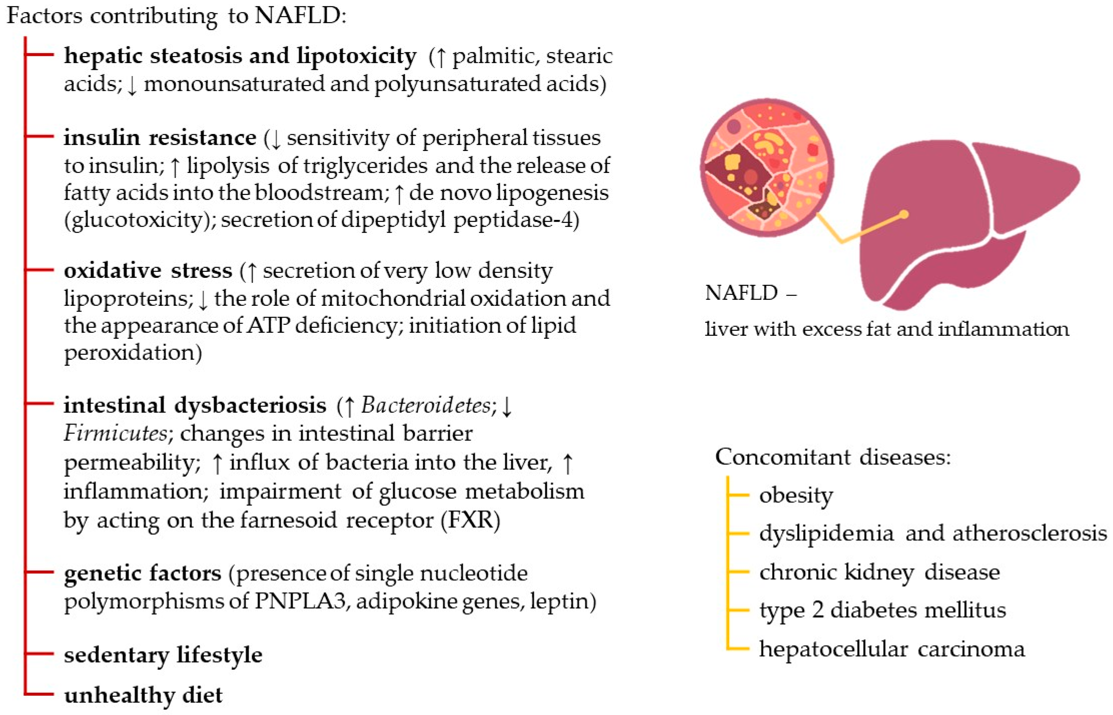 - Kytikova, O.Y.; Novgorodtseva, T.P.; Denisenko, Y.K.; Kovalevsky, D.A. Metabolic and Genetic Determinants of Lipid Metabolism Disruption in Non-Alcoholic Fatty Liver Disease. Russ. J. Gastroenterol. Hepatol. Coloproctol. 2020, 30, 15–25. [Google Scholar] [CrossRef]