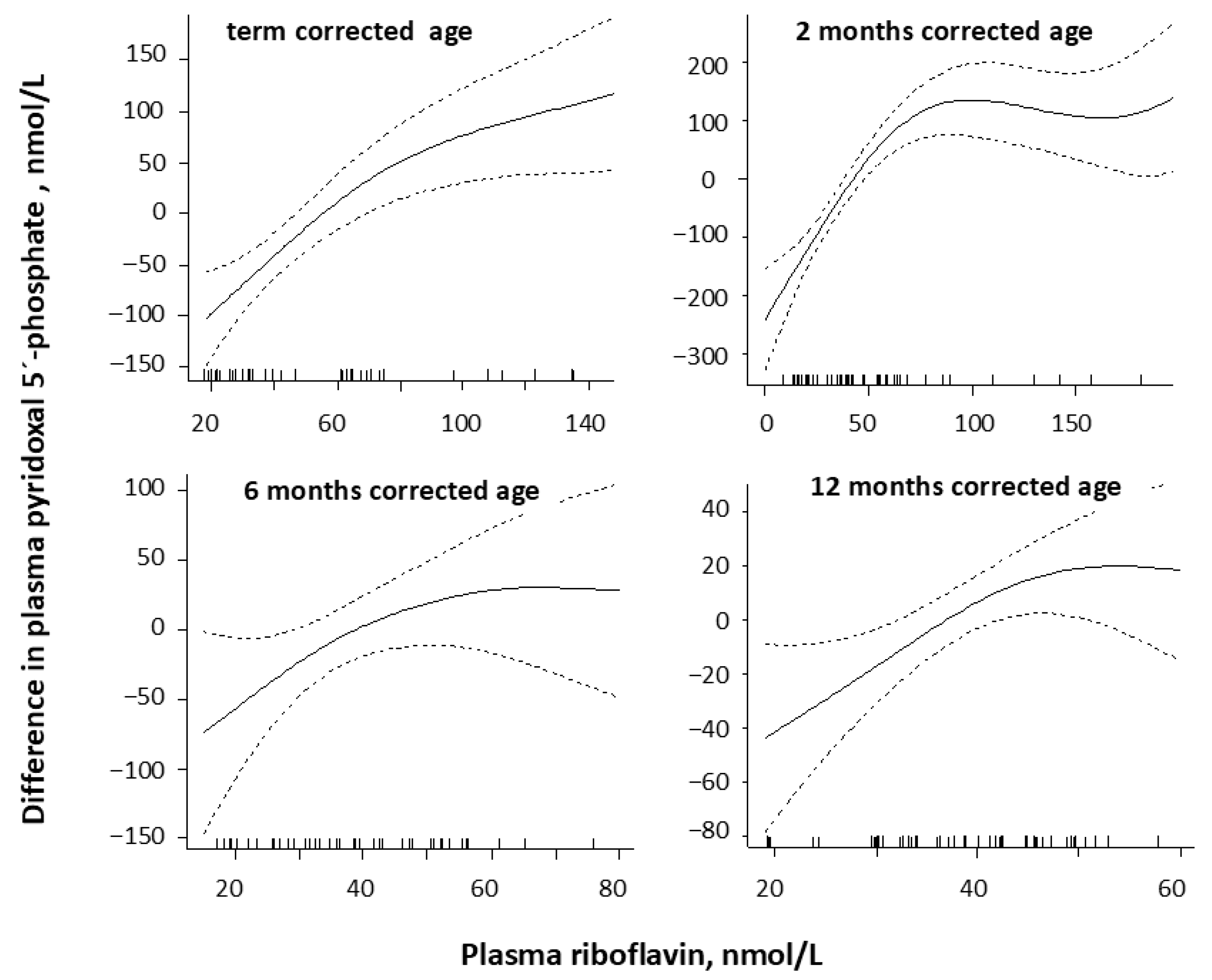 | Plasma Pyridoxal 5-phosphate, nmol/L | 109 (79, 159) | 291 (217, 399) | <0.001 | 93 (54, 140) | 274 (175, 366) | <0.001 | 112 (82, 199) | 196 (132, 261) | 0.015 |