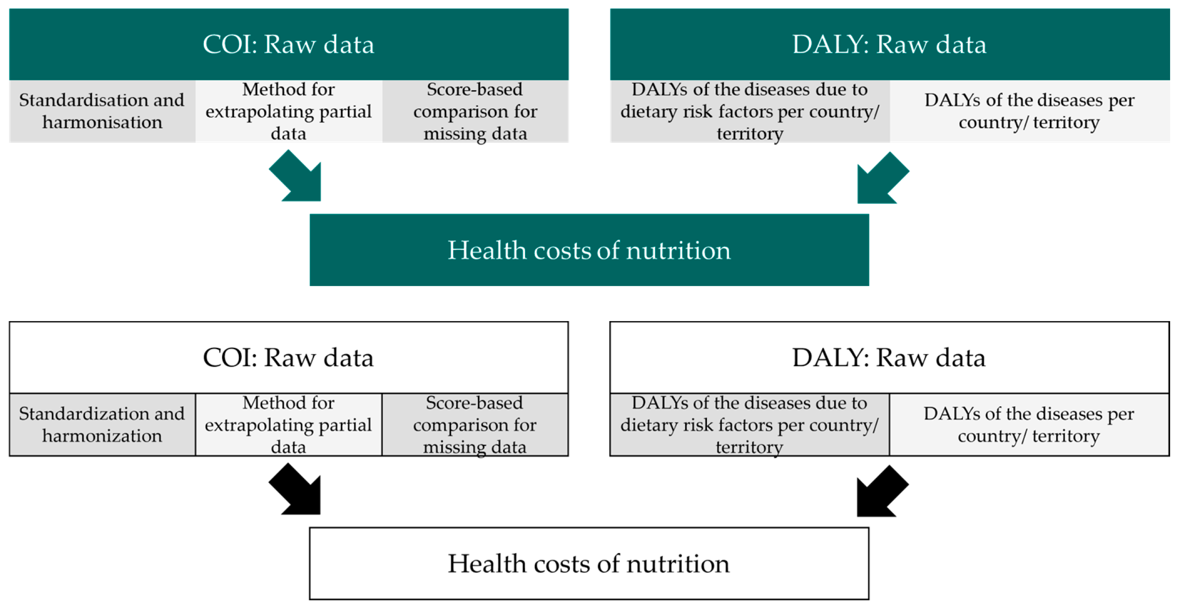 | [15] | Country-specific | TCA, GBD and COI data | Health | Methodology for calculating diet-induced health costs in Germany for 2022:
