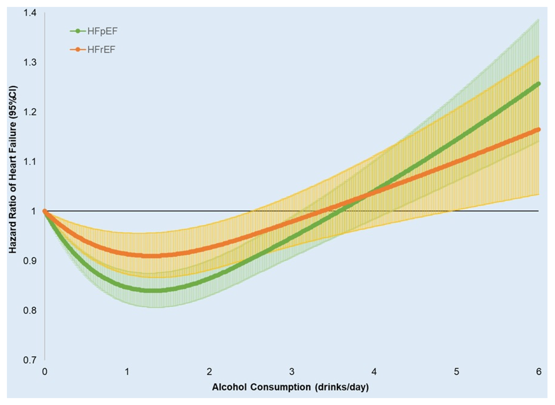 4.1. Alcohol and Heart Failure Subtypes, HFrEF, and HFpEF