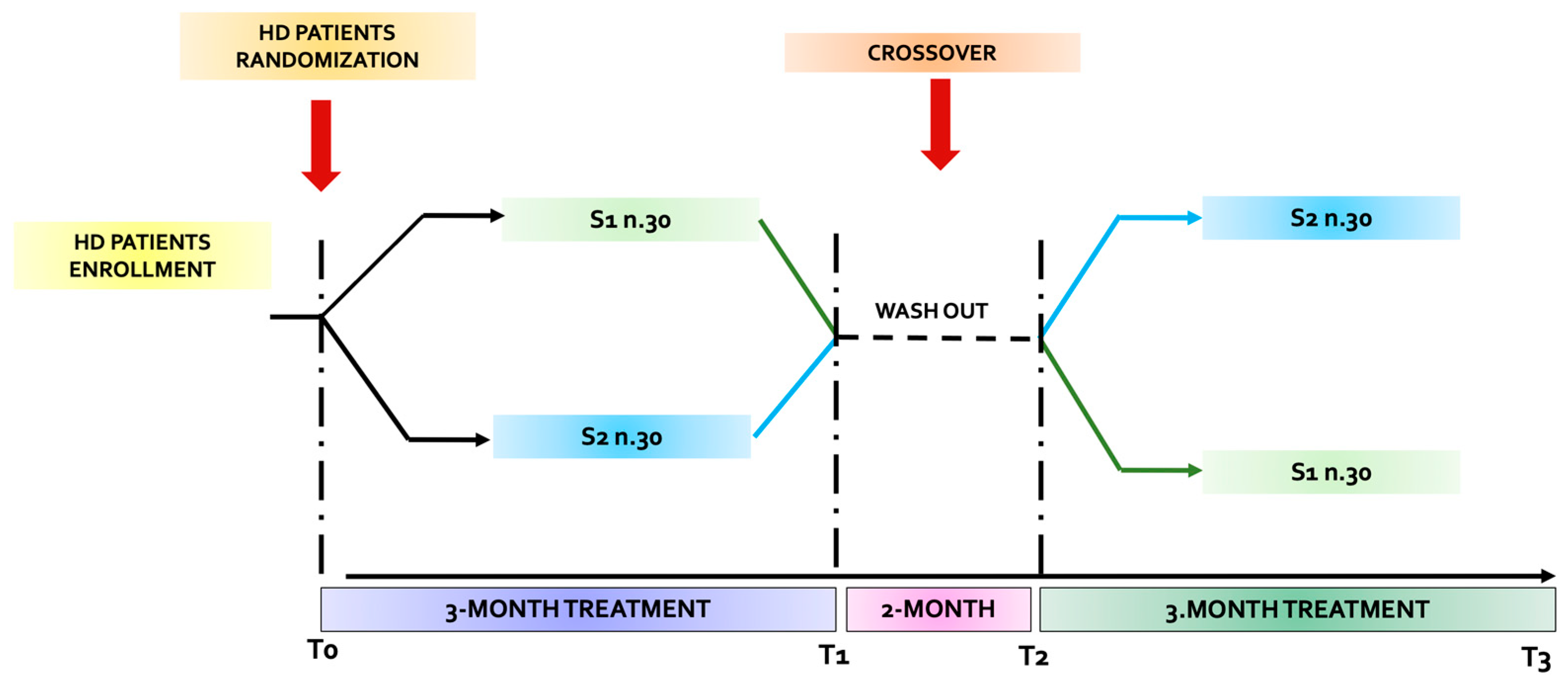 - T2: after the 2-month wash-out period (i.e., 5 months after the start of the study);