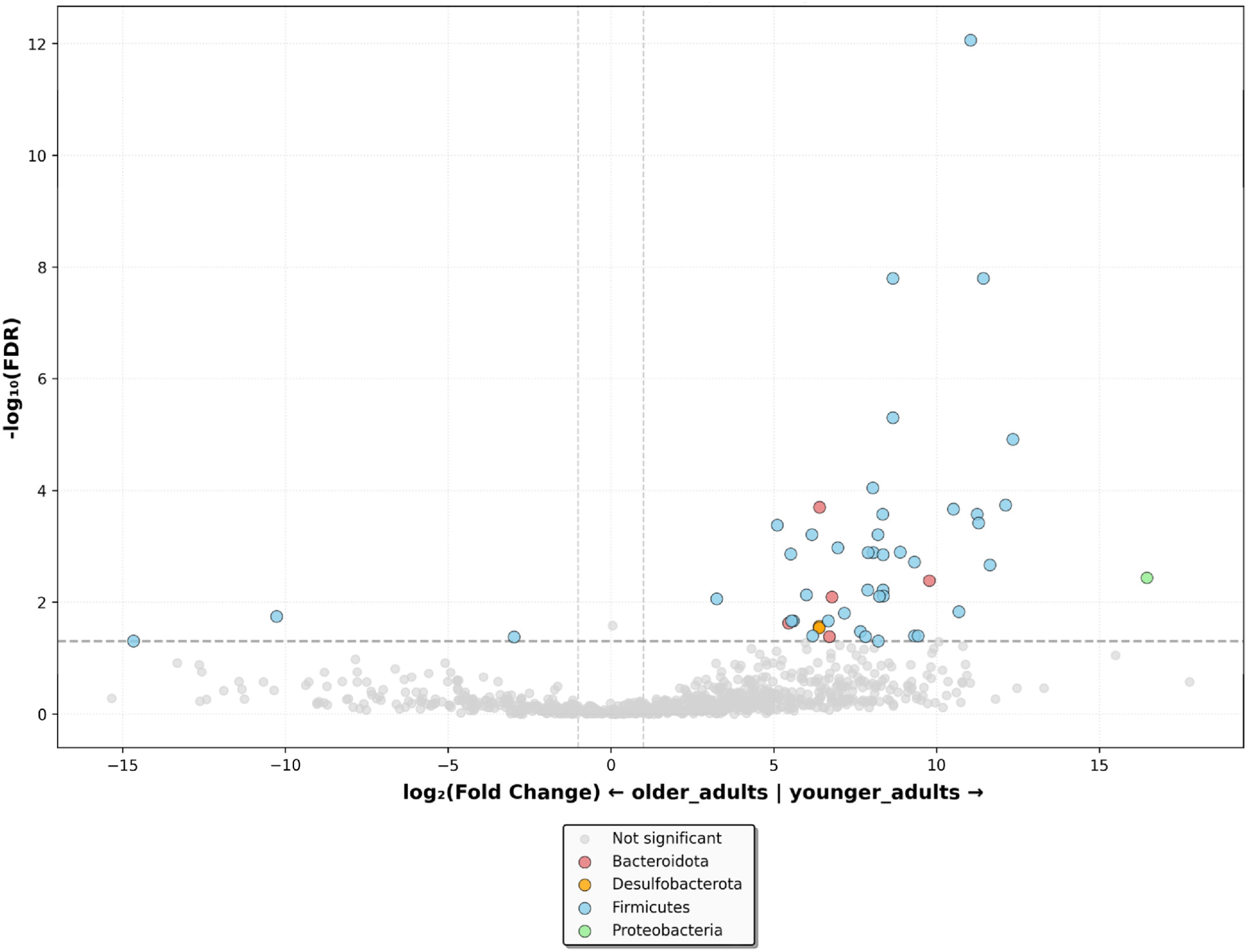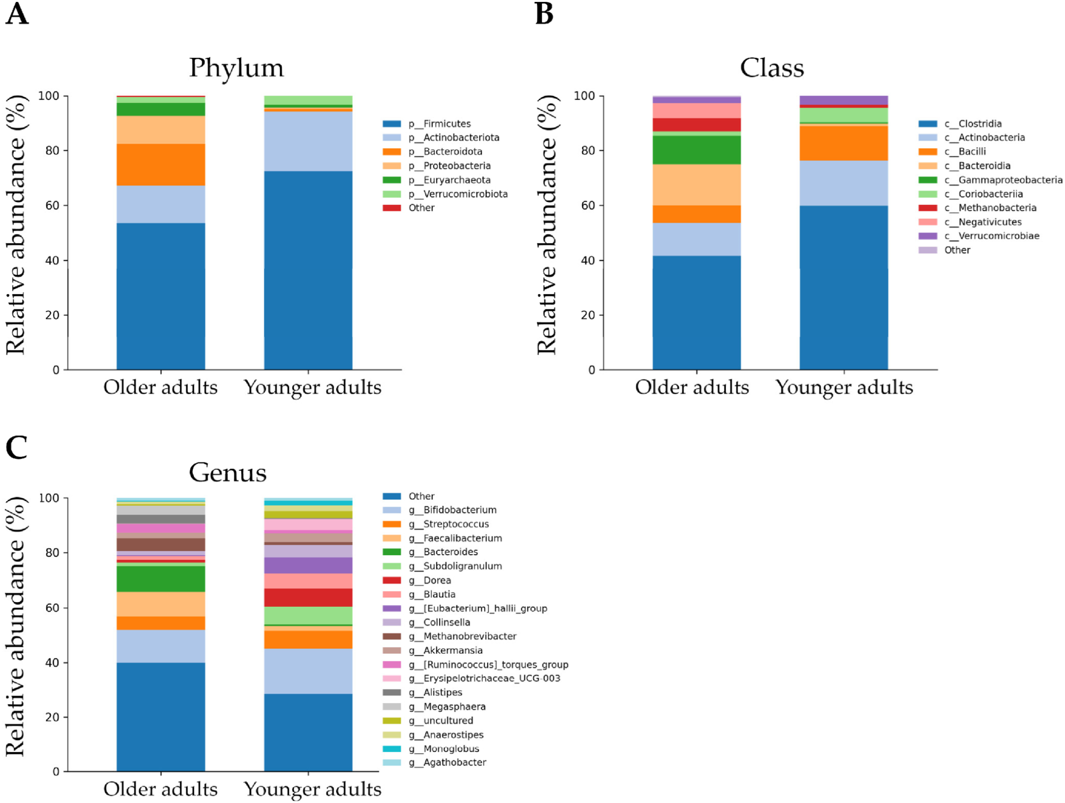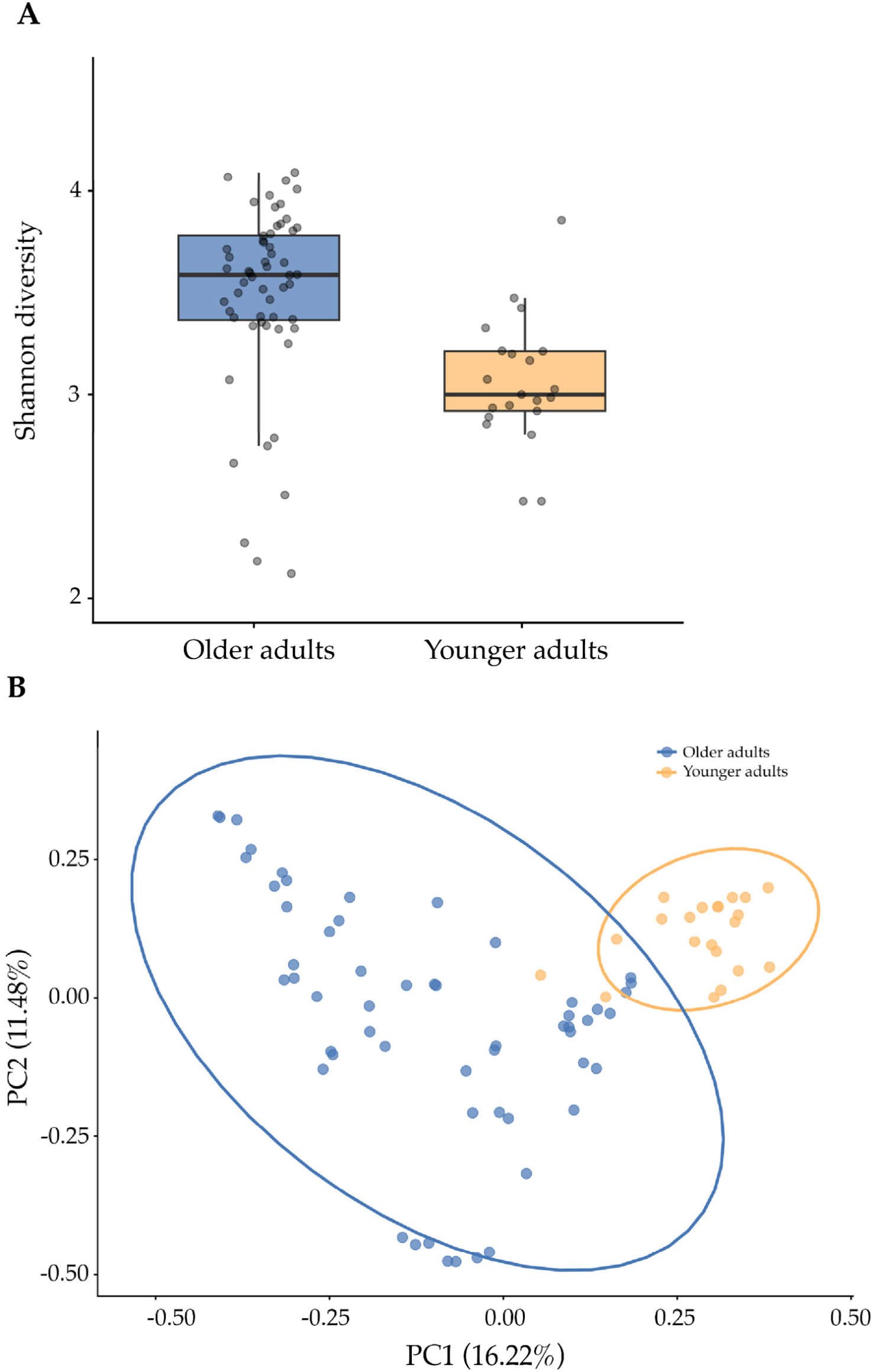 3.2. Microbial Diversity in Older and Younger Adults
