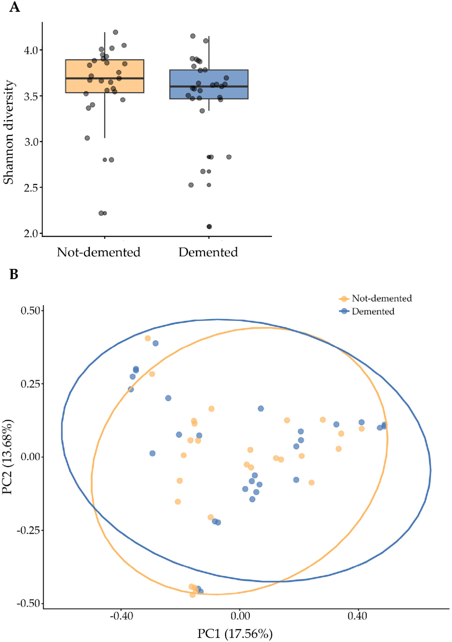 3.5. Alpha and Beta Diversity in Demented and Non-Demented Older Adults
