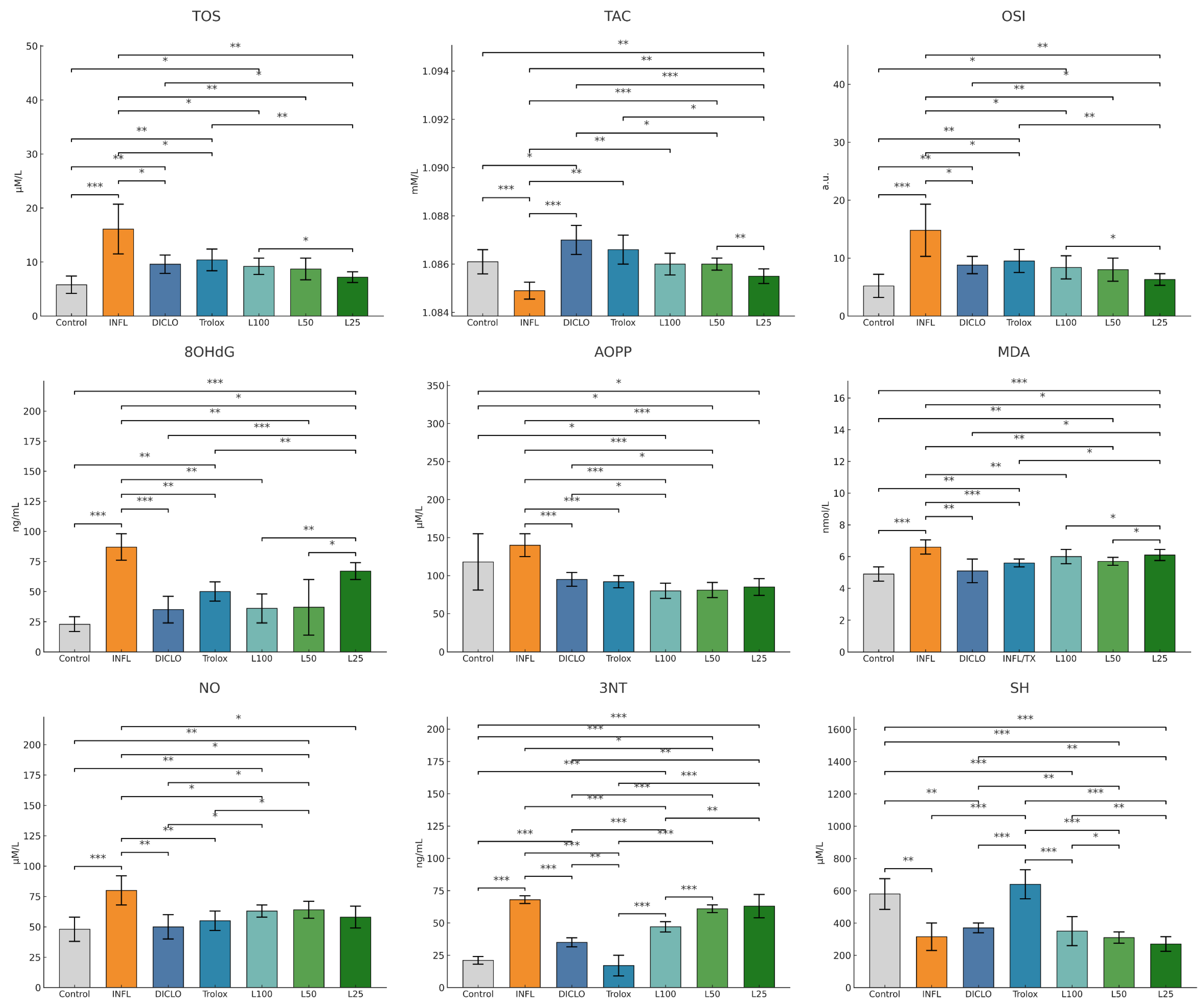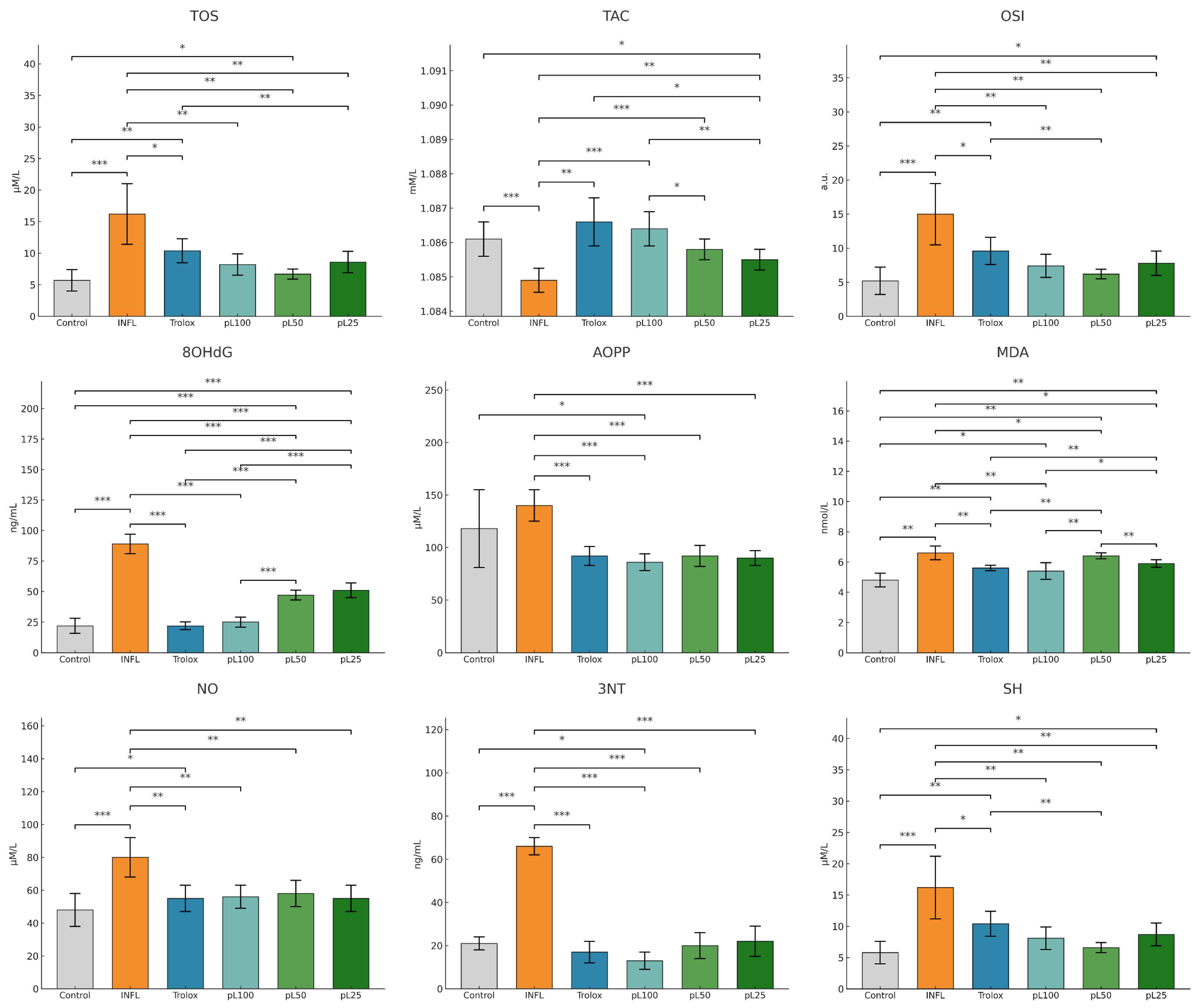 2.6. Biochemical and Oxidative Stress Marker Analysis