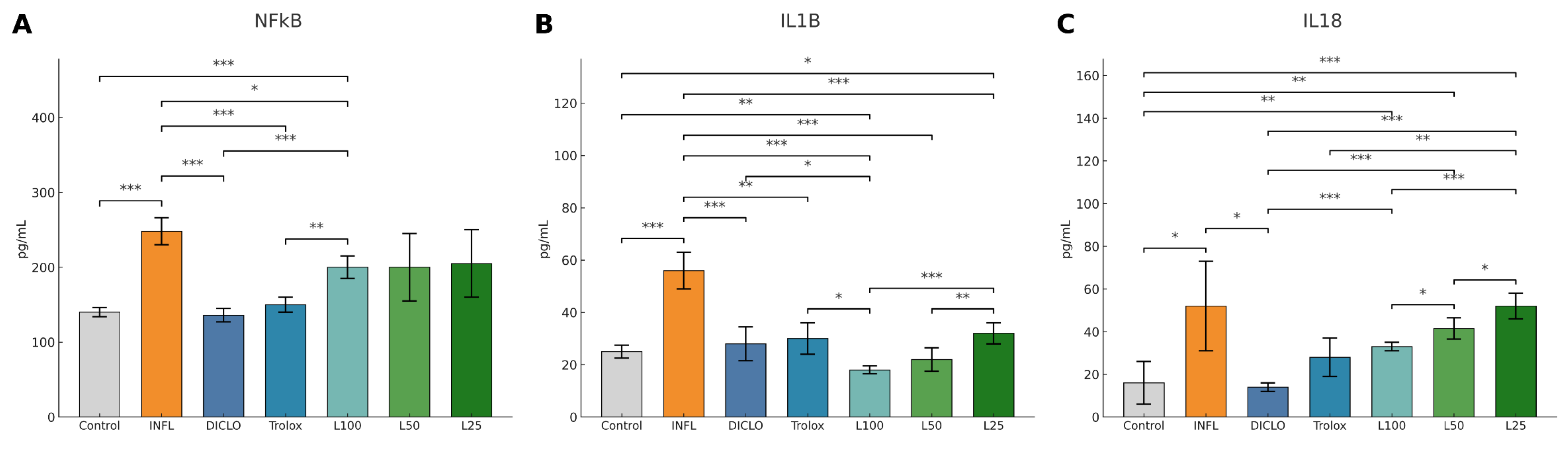 3.3. In Vivo Antioxidant and Anti-Inflammatory Activity