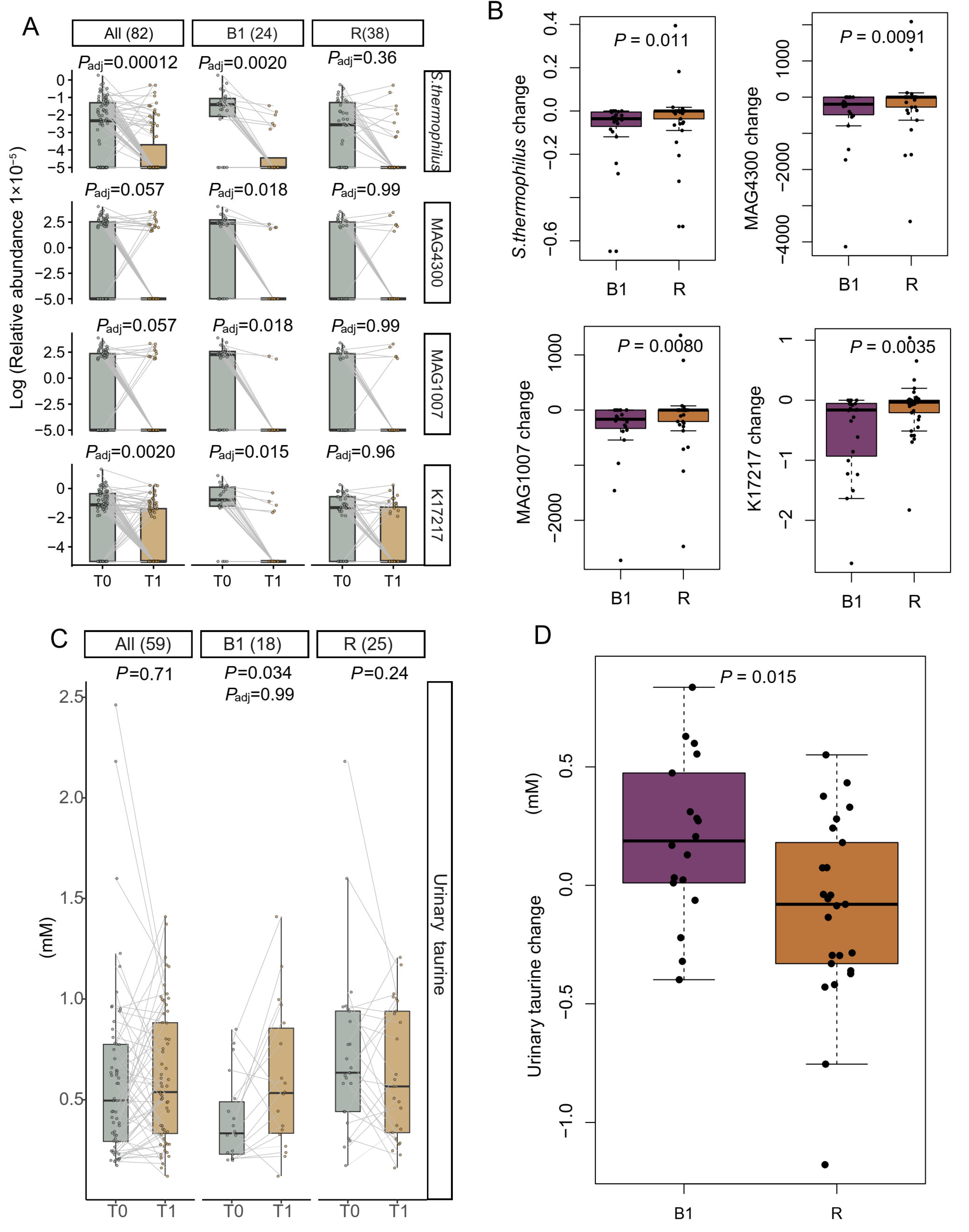 3.6. The Correlation Between S. thermophilus Change and Urinary Taurine Level Change