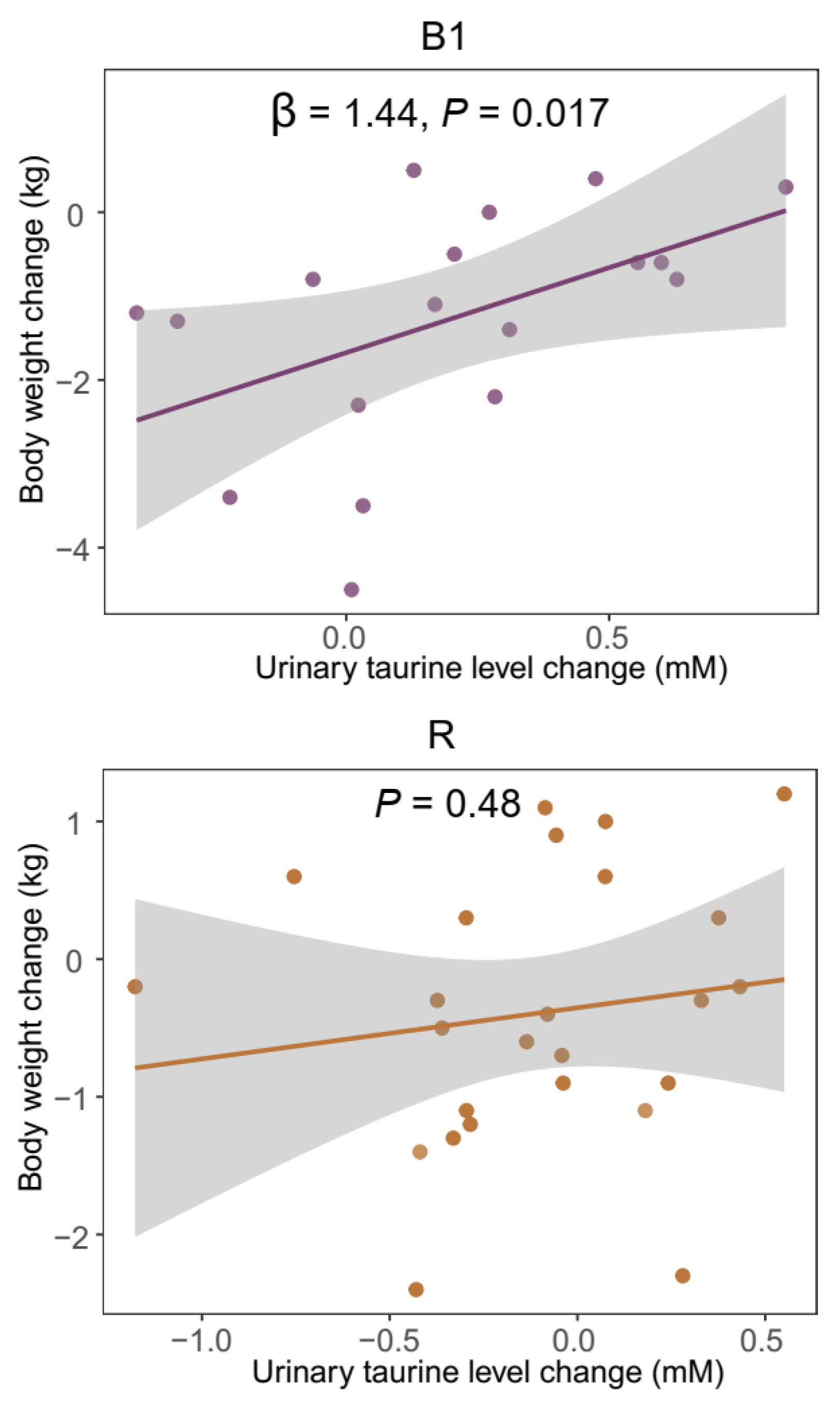 | Urinary taurine level change | 1.04 | 0.43 | 2.40 | 0.021 |
