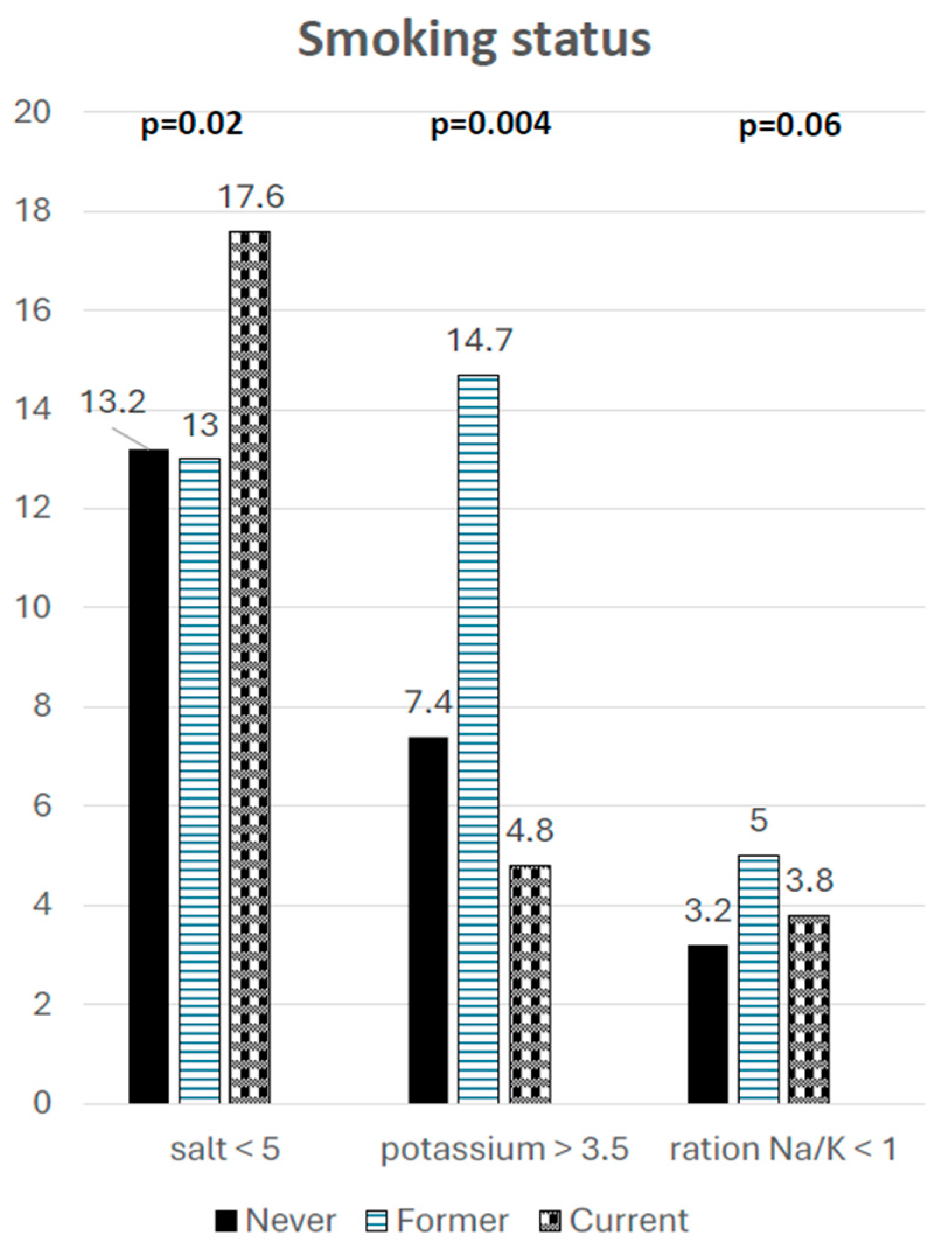 3.3. Salt and Potassium Intake, Sodium-to-Potassium Ratio and Lifestyle Habits