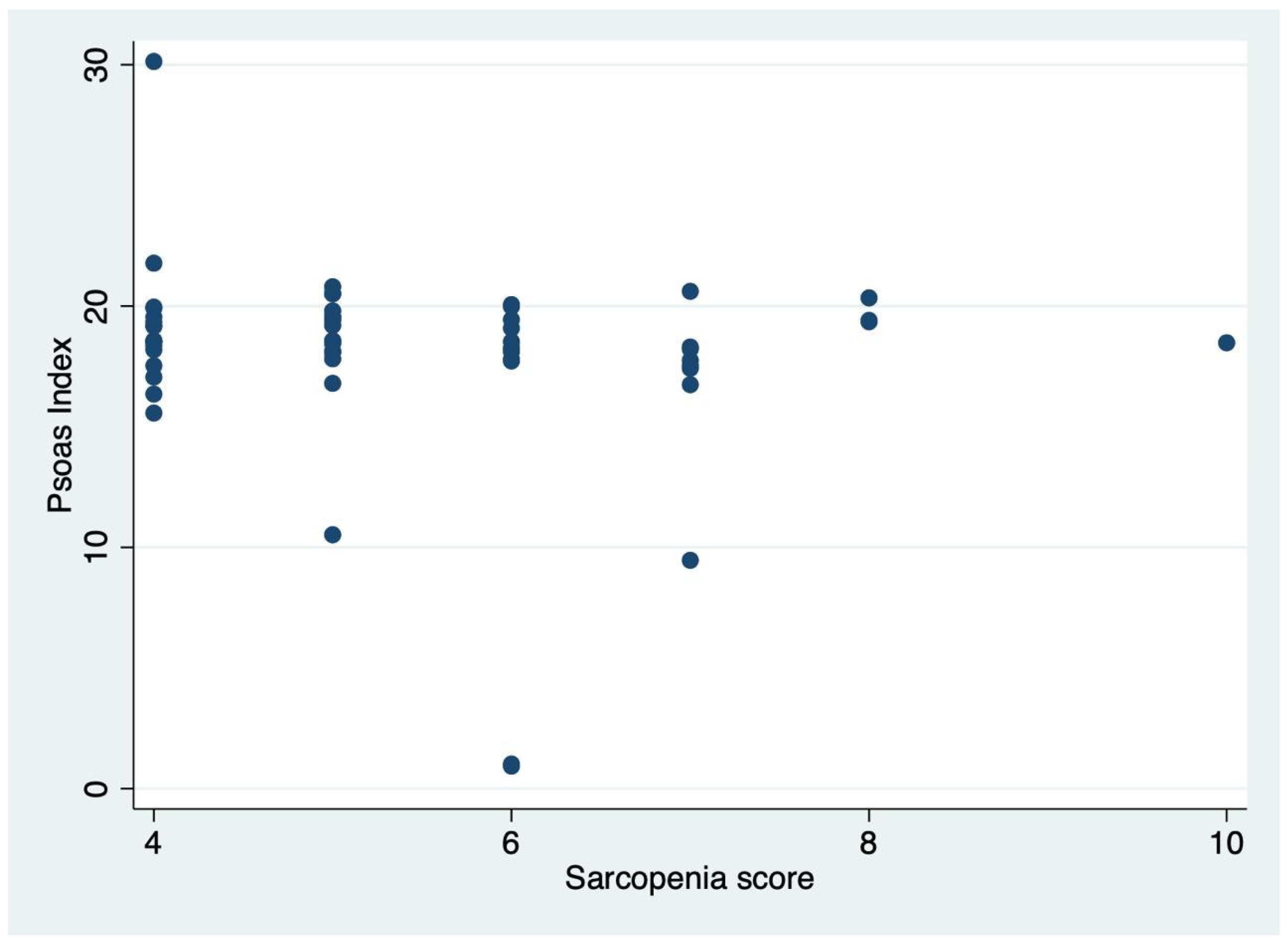 3.2. Accuracy of Psoas Muscle Ultrasound vs. SARC-F Score